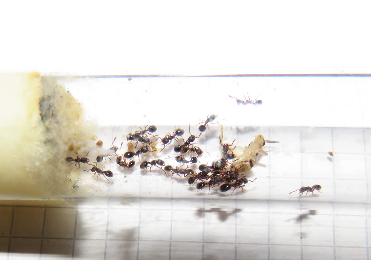 Die weniger gute Seite: Die Koloniegründung mit einer Gynomorphen ist sehr langwierig. Im ersten Jahr nach der Kopula entstehen kaum mehr als 2-3 Arbeiterinnen. Kann mit Zugabe von ein paar Arbeiterinnen-Puppen gepusht werden, aber die muss man erst mal haben! Aktivität im Formikar ist sehr gering.