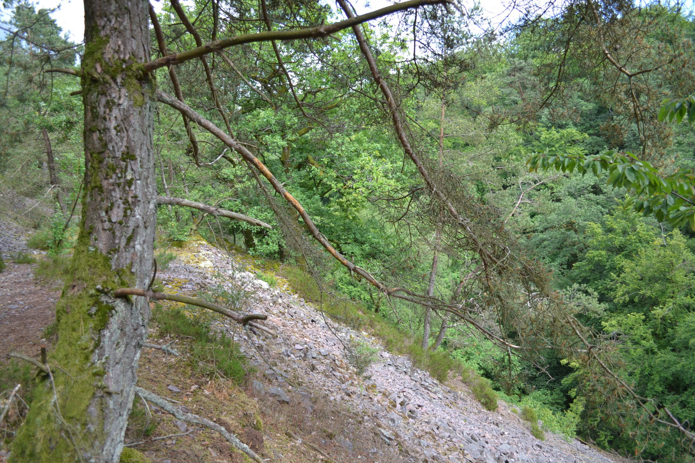 Sehr schön, danke! Es scheint sich um dunklen Tonschiefer zu handeln, ein ausgesprochen xerothermer Standort, eine Heißlände! Unverständlich, warum Formica s. str. nicht den nahen Waldrand als Neststandort nützt. In der Schutthalde sollte es auch Serviformica spp. geben, bei der die Waldameisengyne sozialparasitisch gründet. Vielleicht findest du einmal ein paar Individuen und kannst daheim in der Box Fotos machen. Vom Habitat her kann ich mir hier nur F. rufibarbis od. F. clara vorstellen, aber viell. erleben wir da auch eine Überraschung......