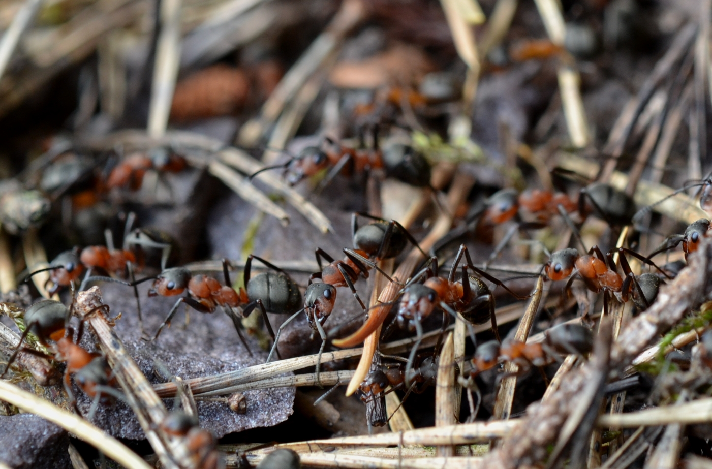 P.S.: Die eher orangerote Färbung bei F. sanguinea ist keineswegs untypisch: In der Färbung und einigen Verhaltensweisen erscheint F. sanguinea der ebenfalls so gefärbten F. rufibarbis ähnlich.