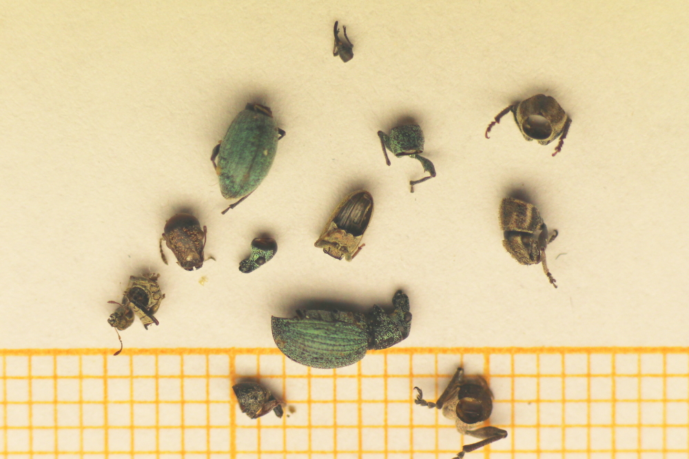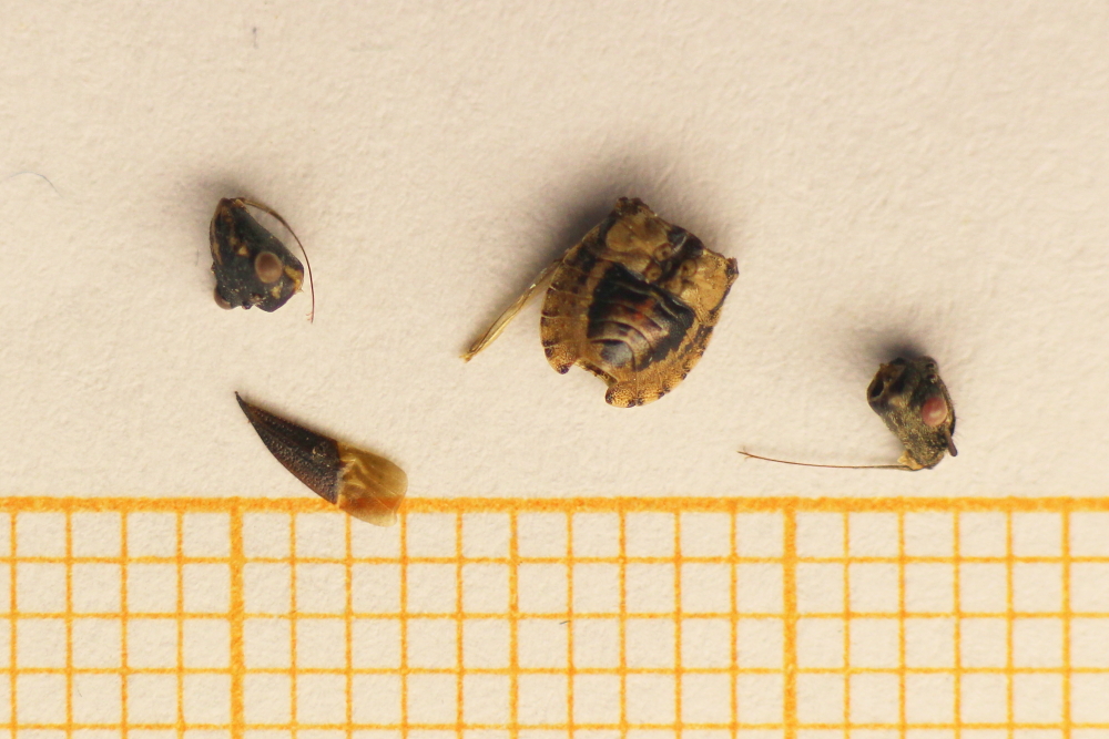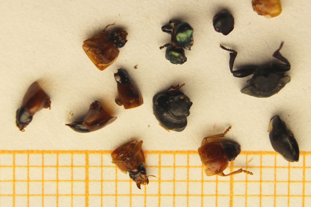 Anders verfahren sie mit dem Bruststück von Fluginsekten, wie die vielen abgetrennten Thorax-Rückenplatten (Tergite) belegen.