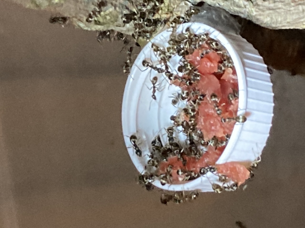 Gerade die "kleinen" freut's, denn die Temnothorax stehen wohl gerade im Vergleich zu den anderen Arten, die auch mal Fleisch annehmen, mehr auf das Fluggetier.