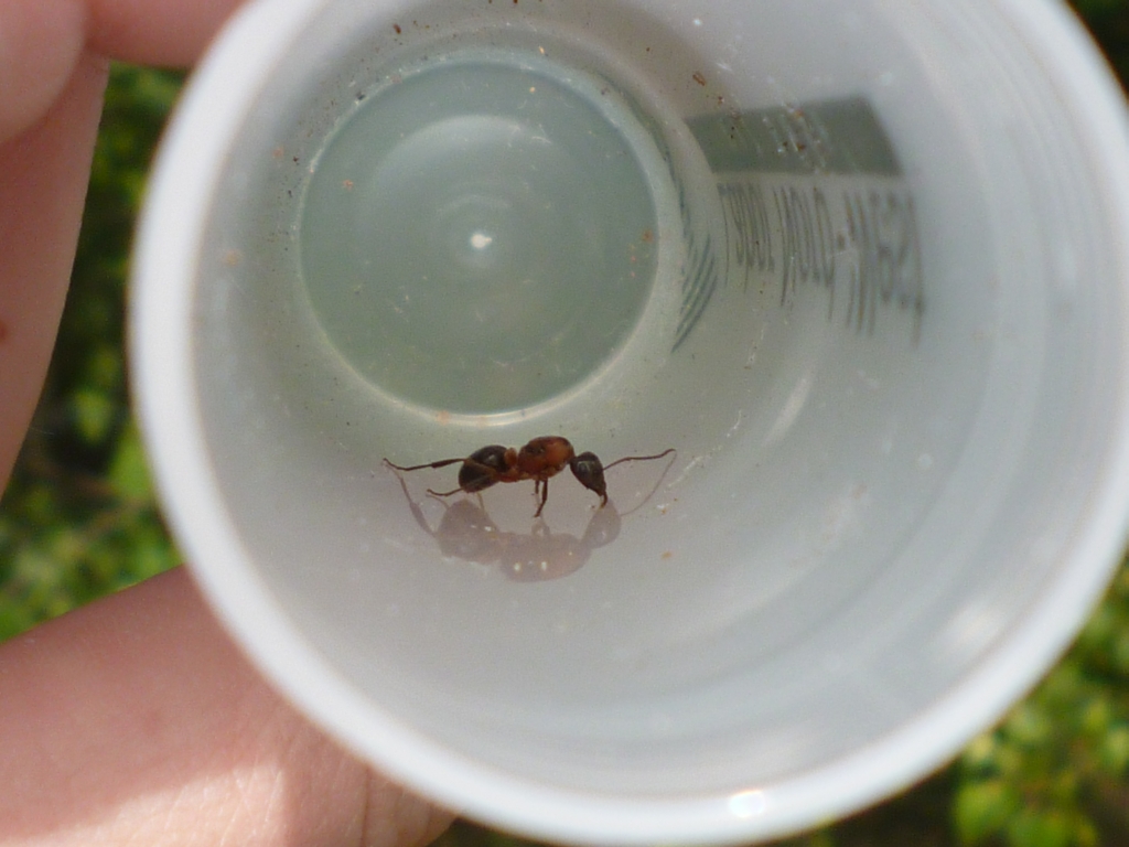 Jedenfalls habe ich noch eine weitere Königin gefunden. Verhielt sich die erste regelrecht apathisch, so ist diese Königin wie aufgedreht im Fangbehälter auf und ab gerannt.