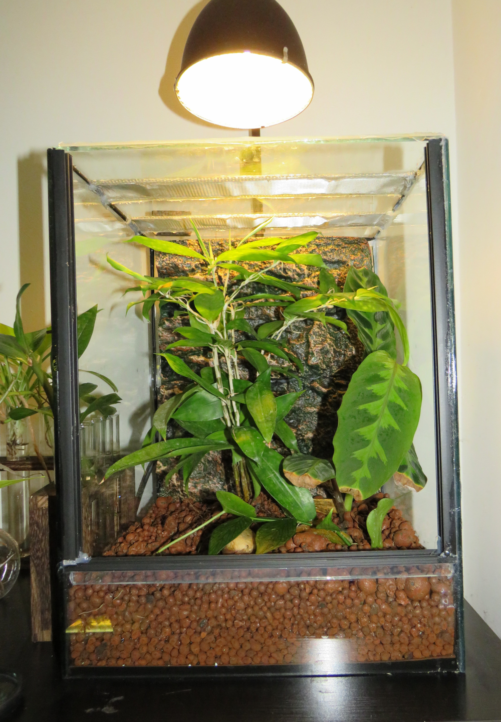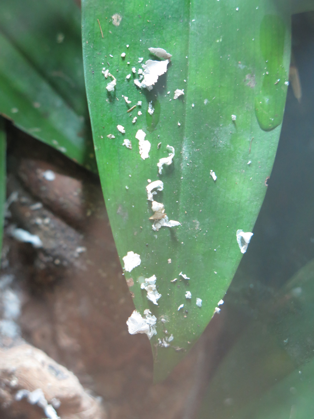 So bleiben bei mir beispielsweise die vertrockneten Blätter des Bambus-Drachenbaums (Dracaena surculosa) oft als etwa faustgrosse Nester zurück. Diese Überbleibsel muss ich regelmässig entfernen, um Platz für neues Pflanzenwachstum zu schaffen und das Terrarium ansehnlich zu halten.