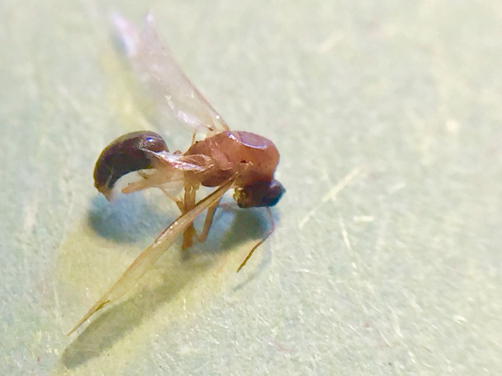 Am 23.06.2018 habe ich in Griesheim (Südhessen) ein vermeintliches Ameisenmännchen von einer Wasserfläche sammeln können, wobei ich mit der Bestimmung in diesem Falle einfach nicht weiter komme.