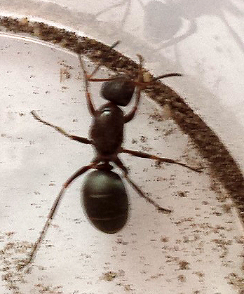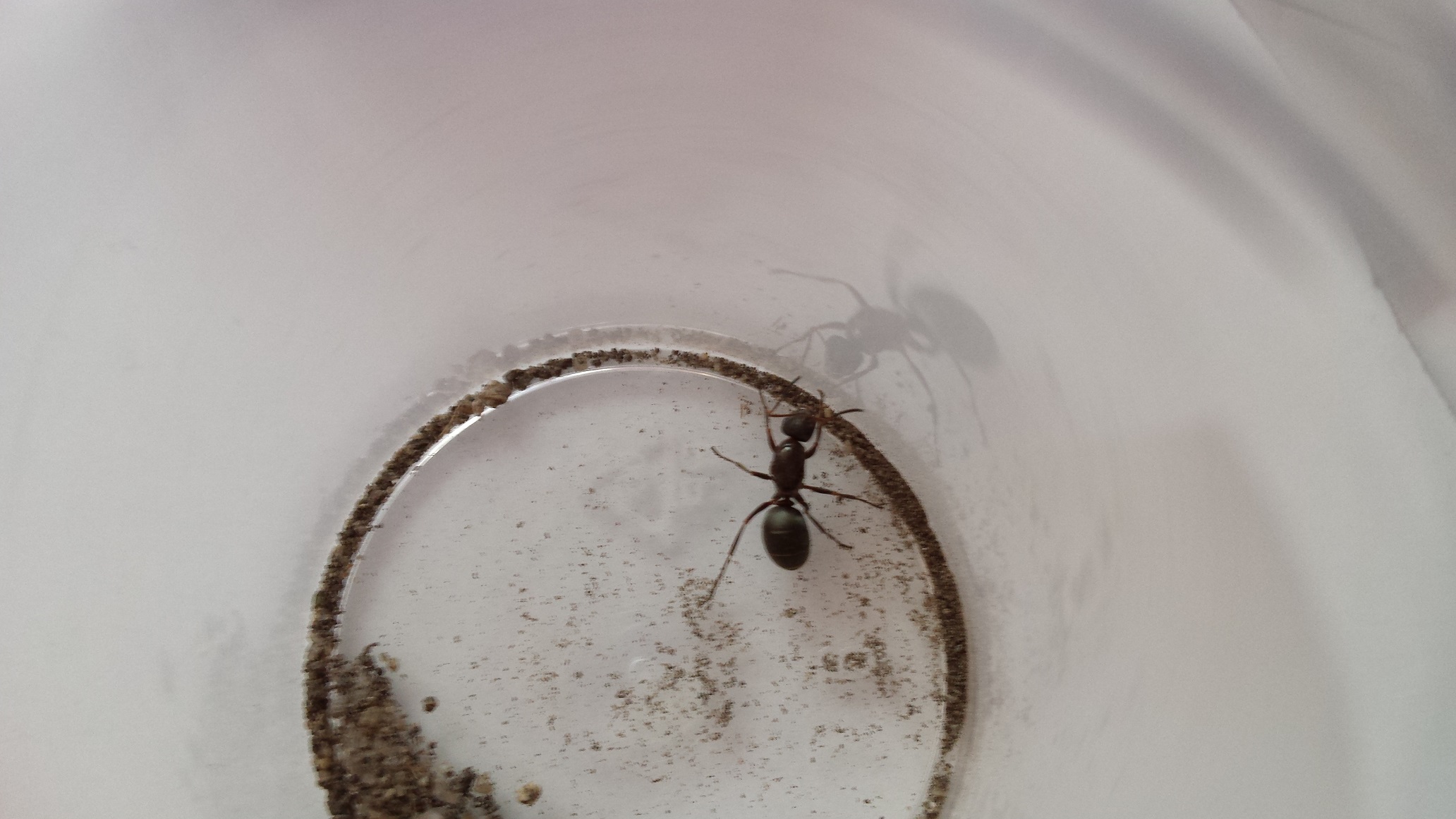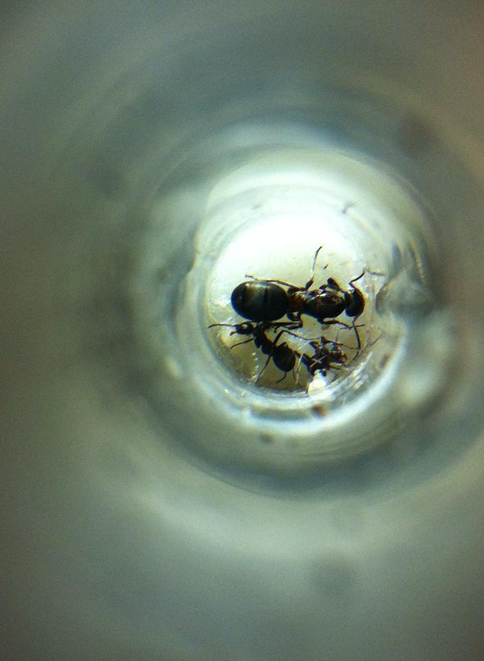 Also die Ameisen leben zusammen im Reagengls und bewegen sich so gut wie nie. Ganz selten mal kommt eine der Arbeiterinnen nach vorne um die Lage zu prüfen.