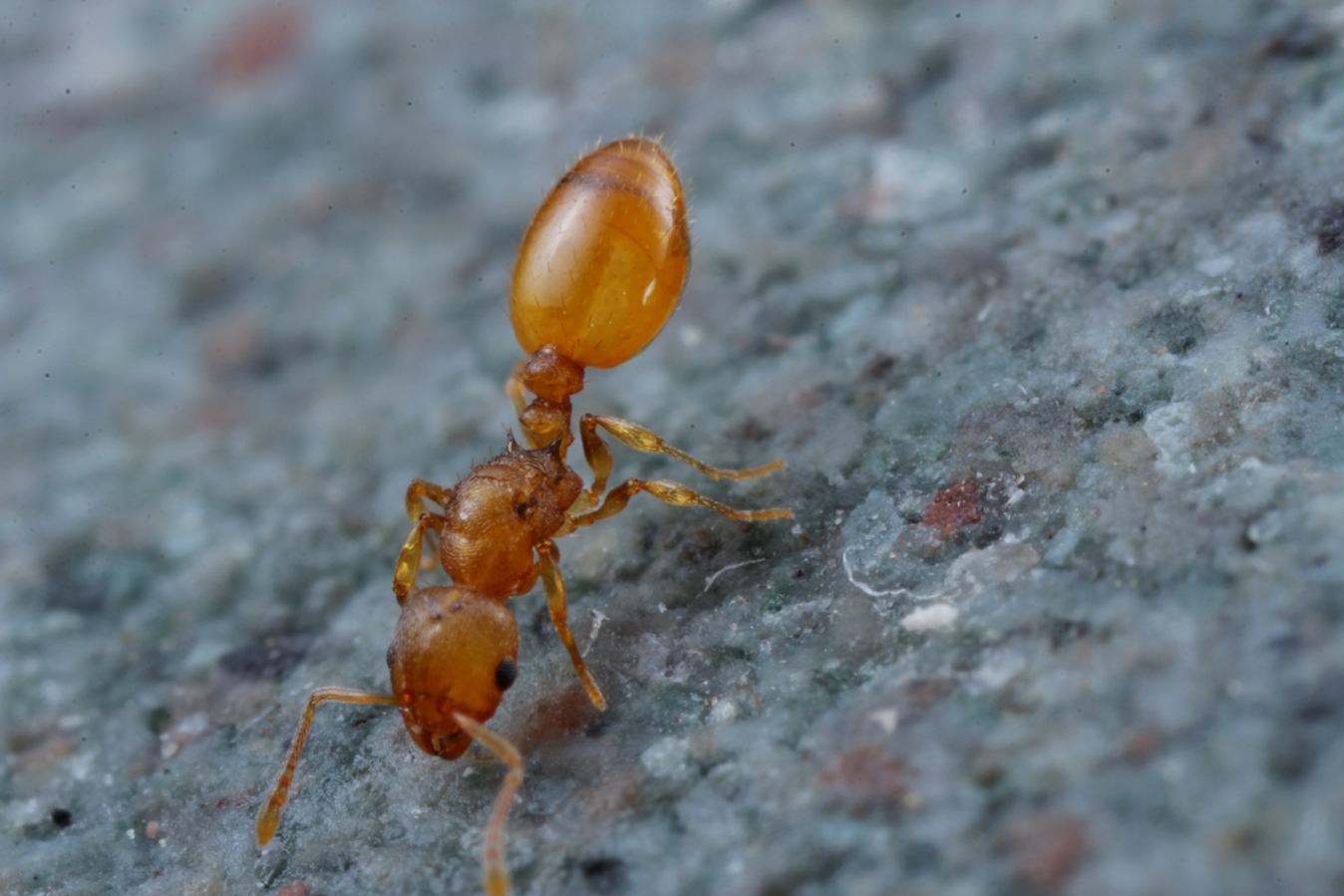 Vor kurzem habe ich mit dem Sohn einen aufgelassenen Steinbruch erforscht. Höhepunkt war wieder der Fund des seltenen Camponotus aethiops. Daneben wurde ein Individuum aus dem vorgelagerten Erdreich gesiebt, das einige Rätsel aufgibt. Ich hoffe, dass einer unserer Experten dazu Stellung nehmen kann.