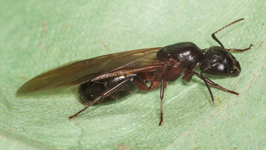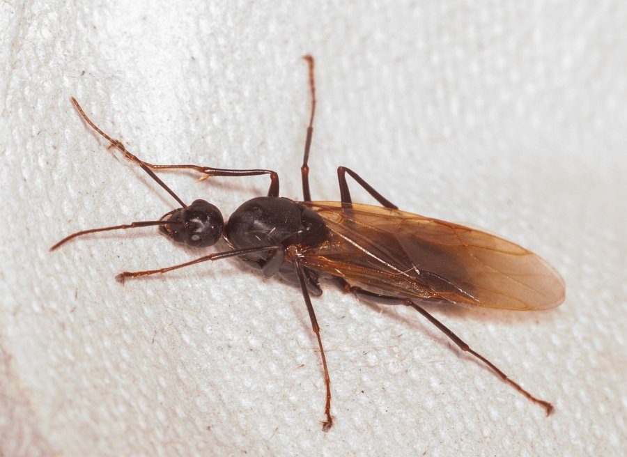 auf derselben sandigen, lückig bewachsenen Fläche saß diese Gyne in einer Lichtfalle. Könnte es sich um eine Camponotus-Art handeln? Aus derselben Falle vom selben Tag stammt auch das schöne Männchen. Ich weiß, daß man Männchen nicht wirklich bestimmen kann, aber könnte man zu einer Richtung tendieren? Gehört er wohl zu ihr - zumindest grob verwandtschaftlich?