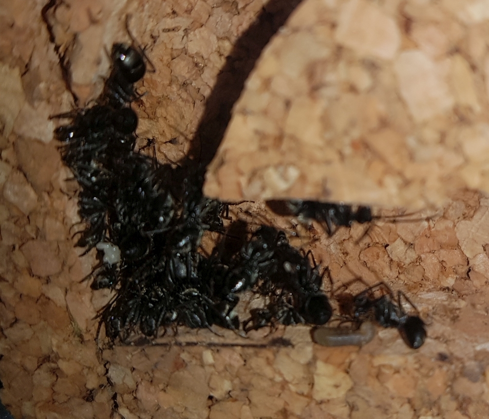 Die Tiere lassen sich nur selten blicken. In den Abendstunden sieht man ab und zu 1-2 Ameisen in der Arene. Die Tiere sind sehr schnell und laufen problemlos an Glas.