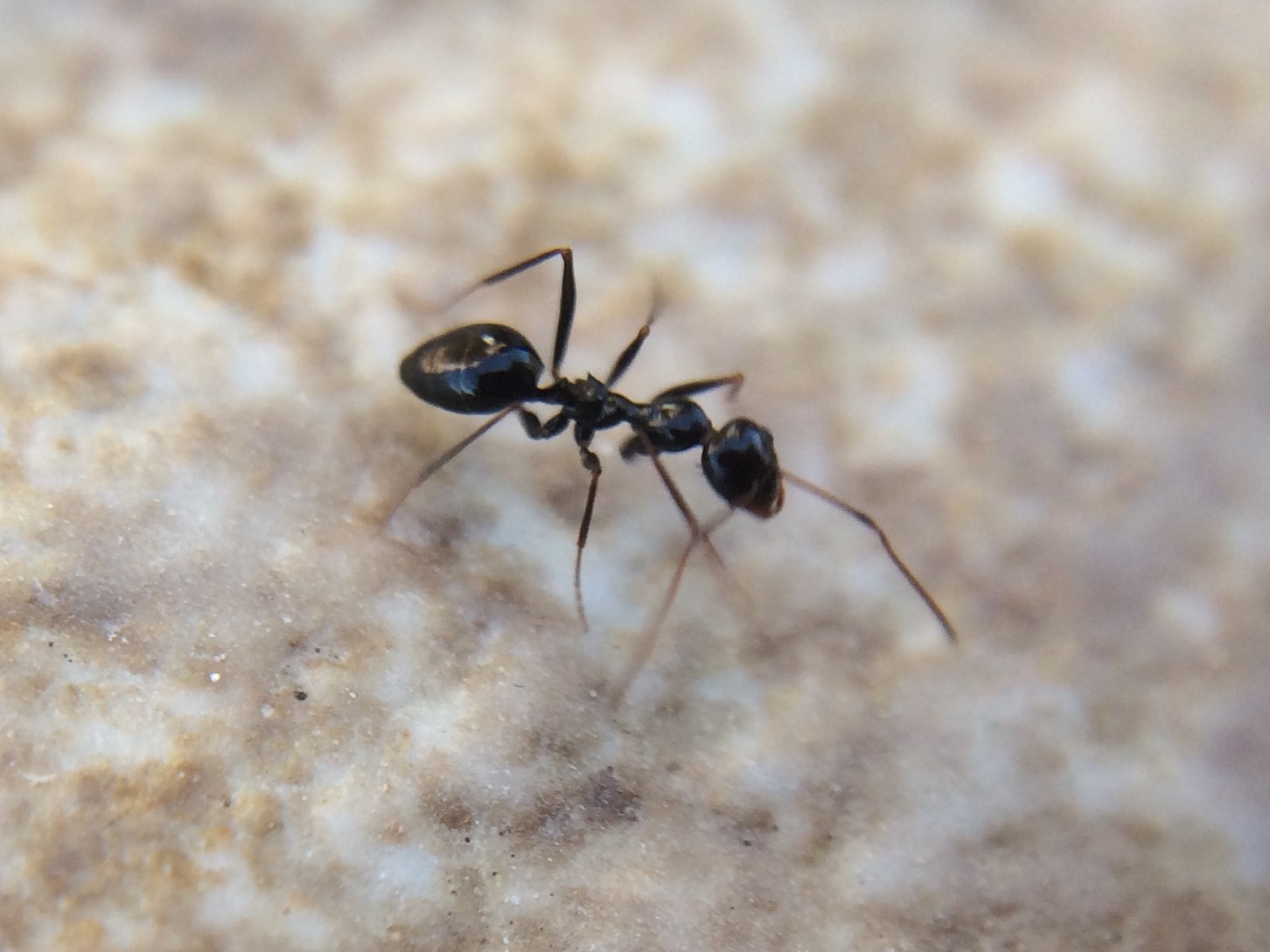 1. Die erste Spezies hat lange Ameisenstraßen über die Terrasse gebildet. Auf dem zweiten Bild ist eine Königin beim Umzug sehen.