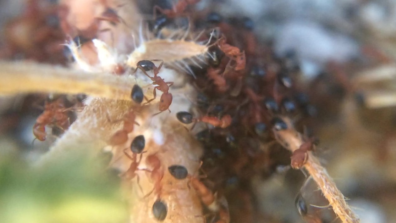3. Hier handelt es sich um kleine rot-schwarze Ameisen. Bessere Bilder, als die Folgenden, habe ich nicht.