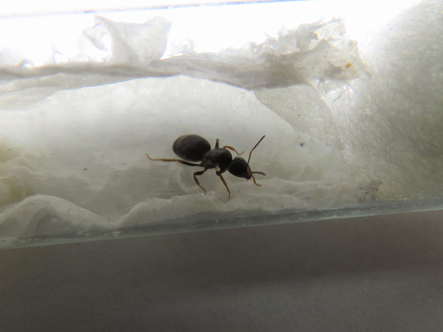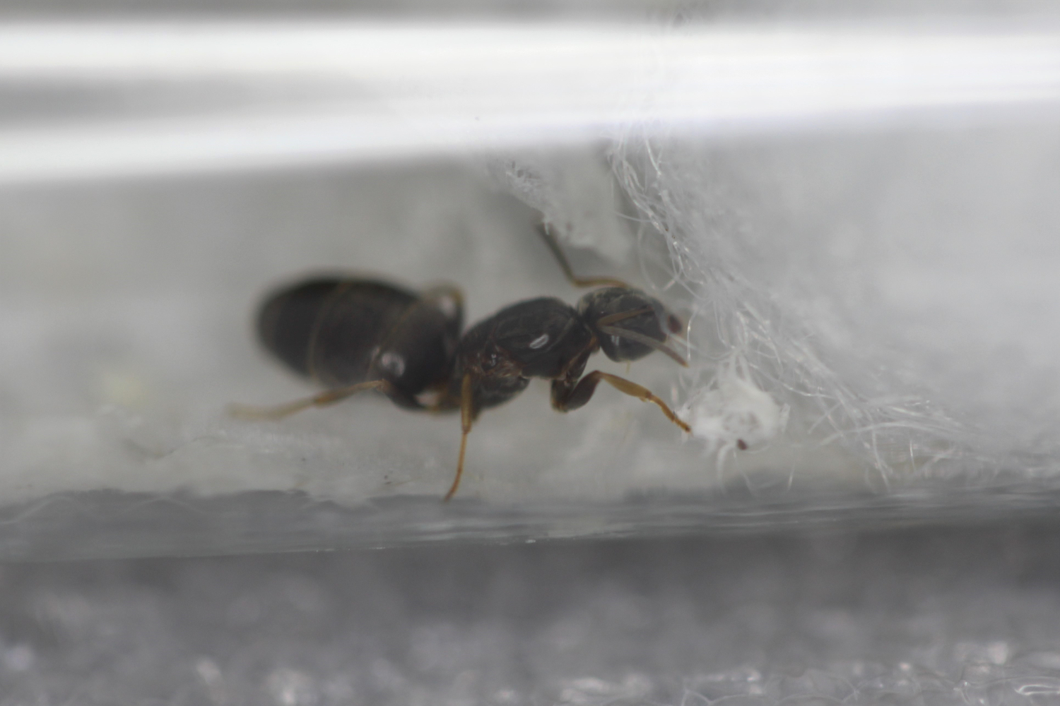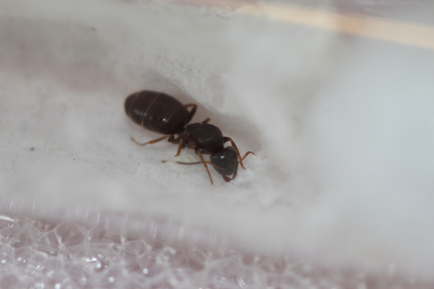 Das Tier ist 8-9 mm lang. Gefunden habe ich es gestern in Spiez (Kanton Bern, auf etwas über 700 m ü. M, montane Umgebung, mit Wäldern und See), am Strassenrand während der Kopulation mit einem Männchen um ca. 10.00 Uhr. Die Gyne hat in Gefangenschaft sofort die Flügel abgeworfen und bereits Eier gelegt.