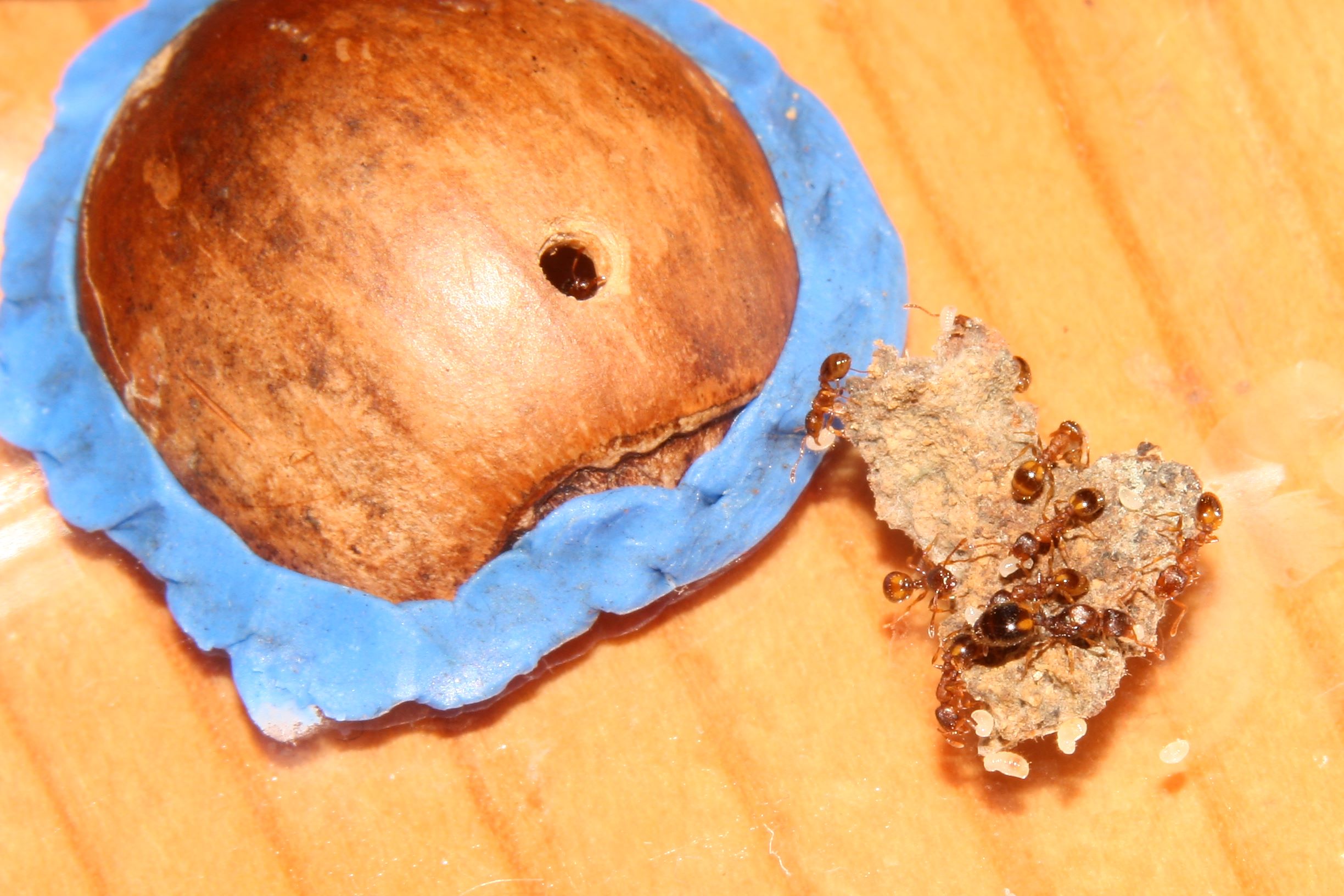 Hier gibt es noch eine kleine Ergänzung dazu und zwar hab ich Kolonie A umquartiert, da das alte Nest samt Formi komplett verschimmelt war.