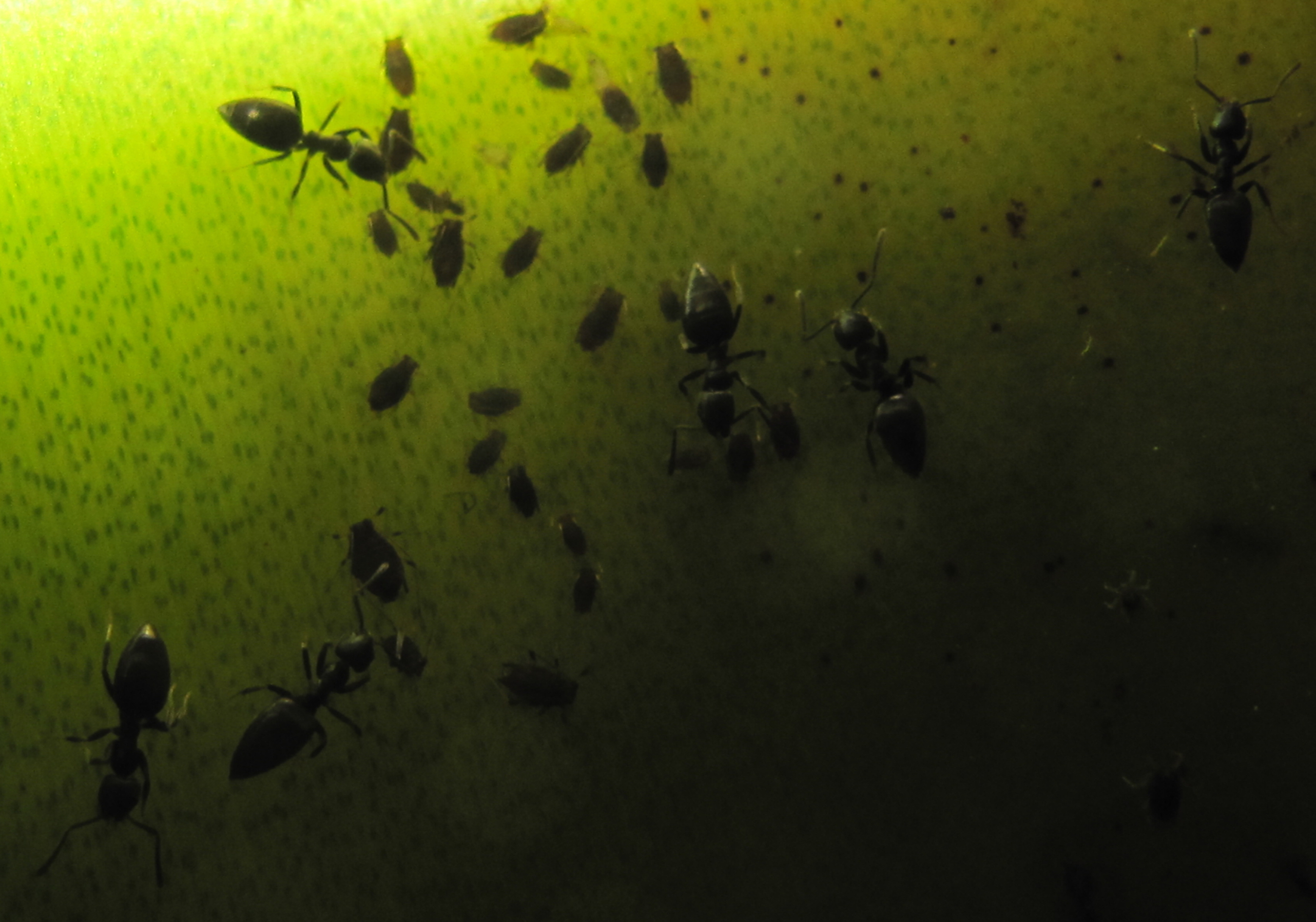 Beim Zoomen glaube ich tw. helle Stellen an den Beinen der Ameisen zu erkennen. Technomyrmex vitiensis wird auf Deutsch "Weißfußameise" genannt, sie gehört ebenfalls zur Unterfamilie der Dolichoderinae. Also: wahrscheinlich diese Art od. eine Tapinoma sp.