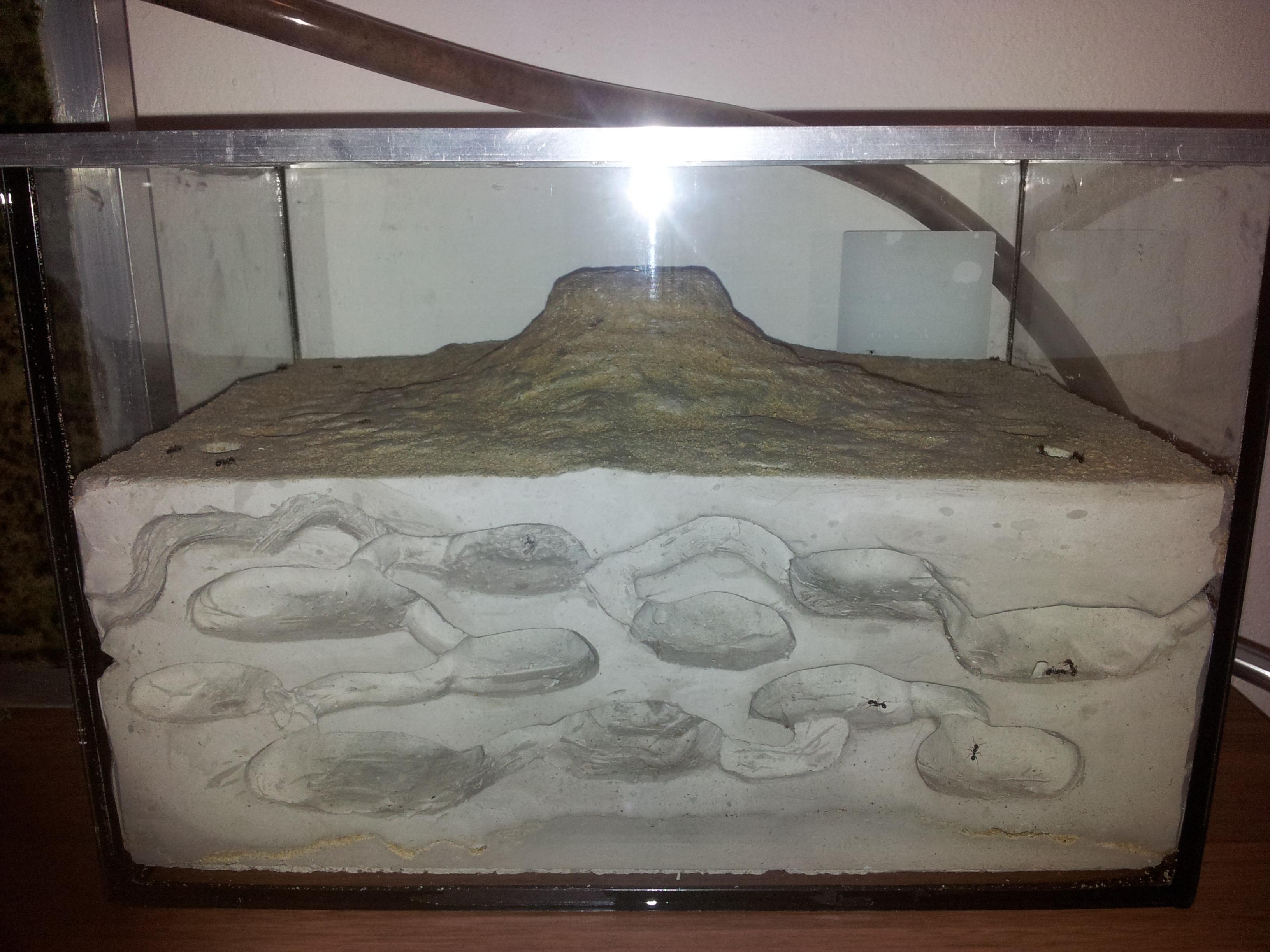Also meinst du genau umgekehrt? Die Pappe sozusagen in der Mitte des Formicarium anbringen, dann das Gips rein und später die Mitte ausfüllen ?