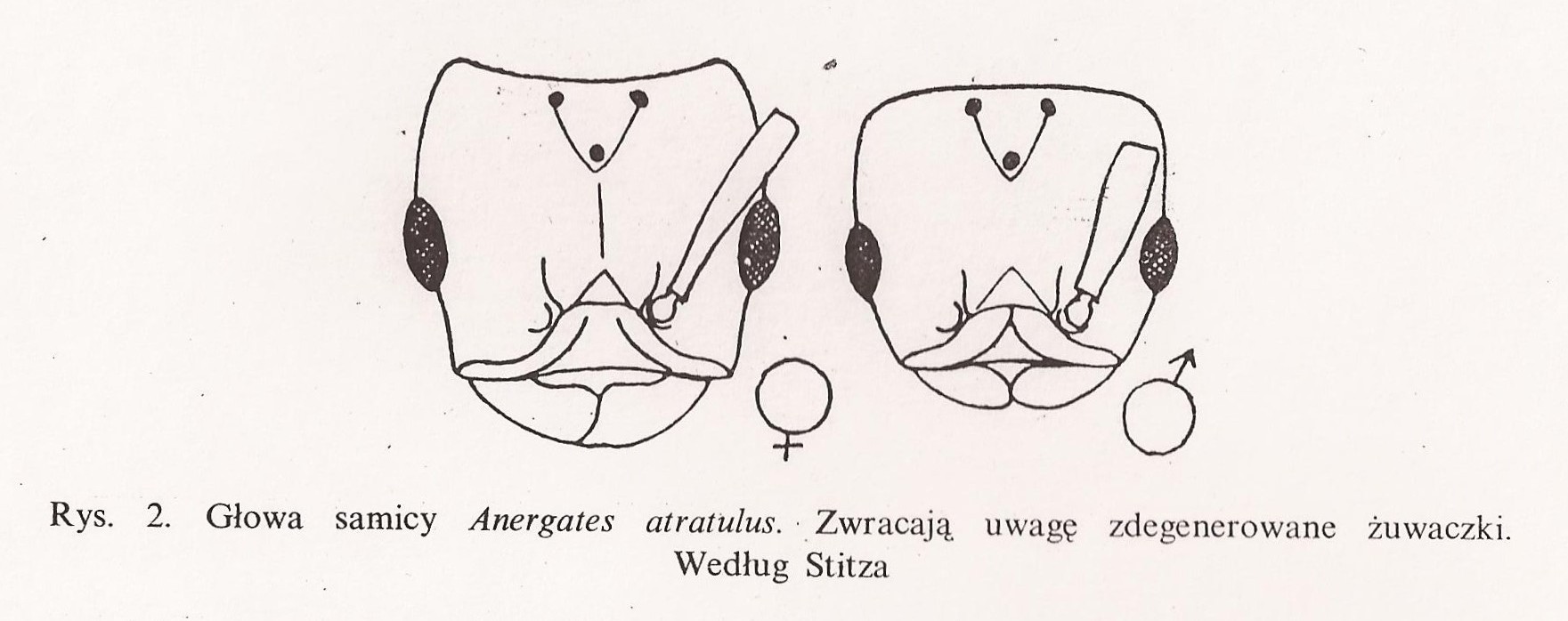 Once this species was included in the extreme, workerless inquilines but now it is considered to be a workerless inquiline without extreme reductions, e.g. no pupoid males but normal ones. The decision to exclude it was made by Edward Osborne Wilson in 1984 in a study of the inquilines in the genus Pheidole.