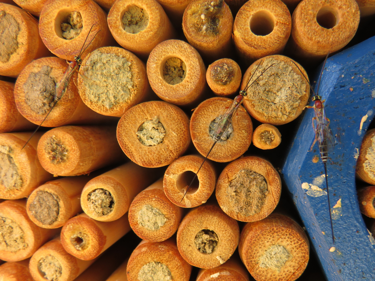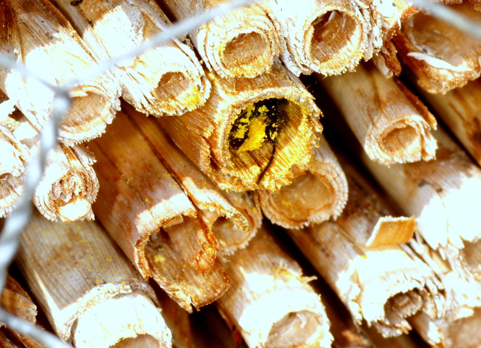 Bei uns habe ich bisher noch keine gesehen. Das Mauerbienenhotel muss ich morgen noch reinigen und dann kommt es auch wieder raus. Diesmal war es nicht so stark besetzt. Vielleicht 10 Puppen, ein paar Diebskäfer usw...
