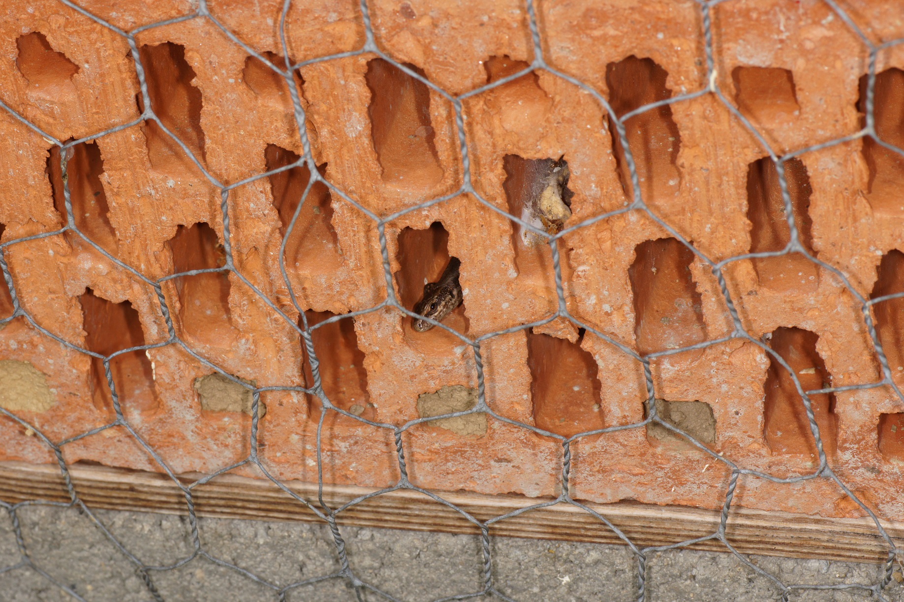 Und wieder: Neben den Solitärbienen (und -wespen) haben sich meine Eidechsen neben Dolichoderus quadripunctatus fix im Hotel einquartiert. Dolichoderus hat sich heuer sehr gut entwickelt, ich bin immer noch nicht sicher, ob sie der Bienenbrut schaden können. Inzwischen habe ich in meinem kleinen Garten sicher sieben, vielleicht noch mehr Mauereidechsen. Sie wohnen ständig im Hotel, in einem nahen Lesesteinhaufen, im Steingarten, an der südlichen Hausmauer und manchmal im alten Mauerstreifen, der den Gartenzaun trägt. Ein Teil des Gartens ist für meine speziellen Ameisen, Pflanzen und eben die Eidechsen abgesperrt, damit die Hunde hier nicht auf die Jagd gehen. Bis auf einen Nachbargarten gibt es rundum nur Englischen Rasen mit reichlich Versiegelung des Bodens!