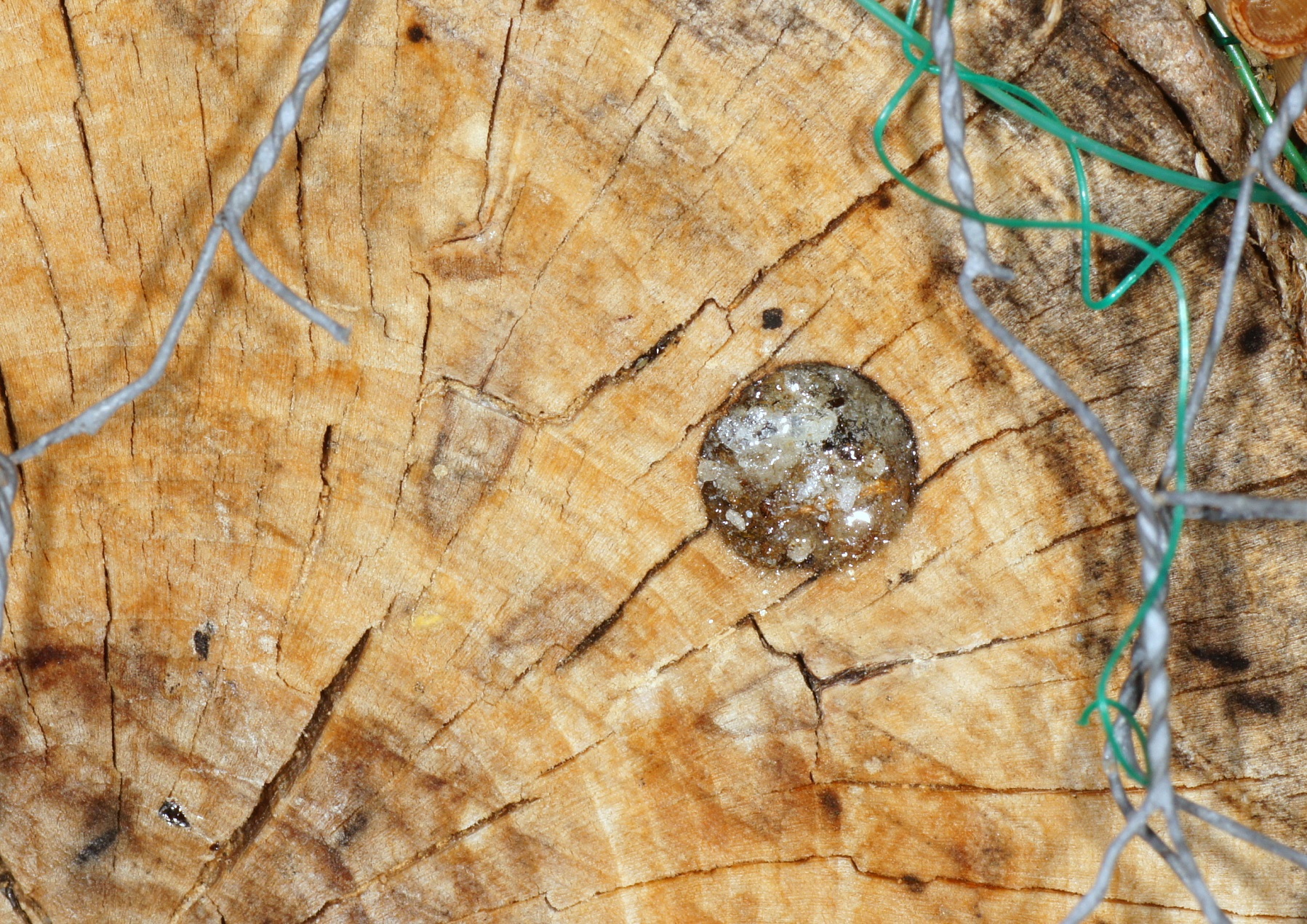 Das Werk ist vollendet, der Verschluss hat knapp die Oberfläche erreicht; und wieder gibt es kleine Partikel von Harz