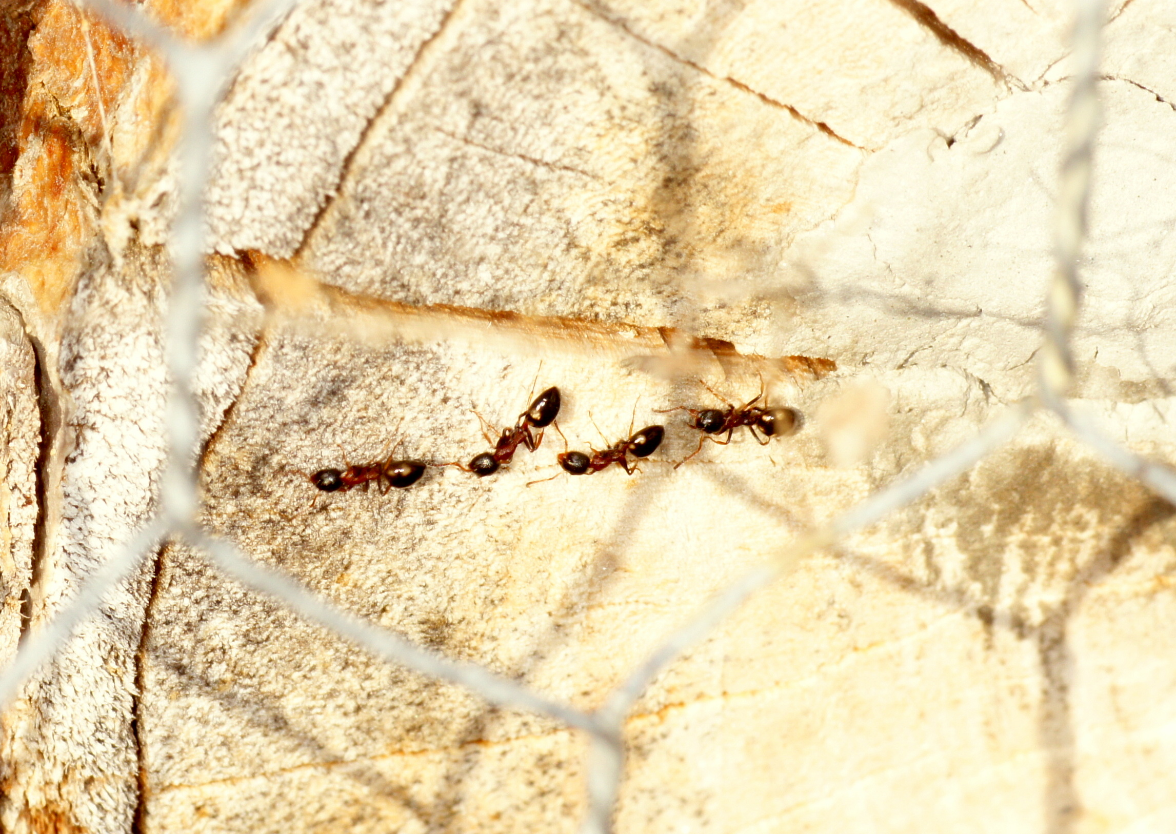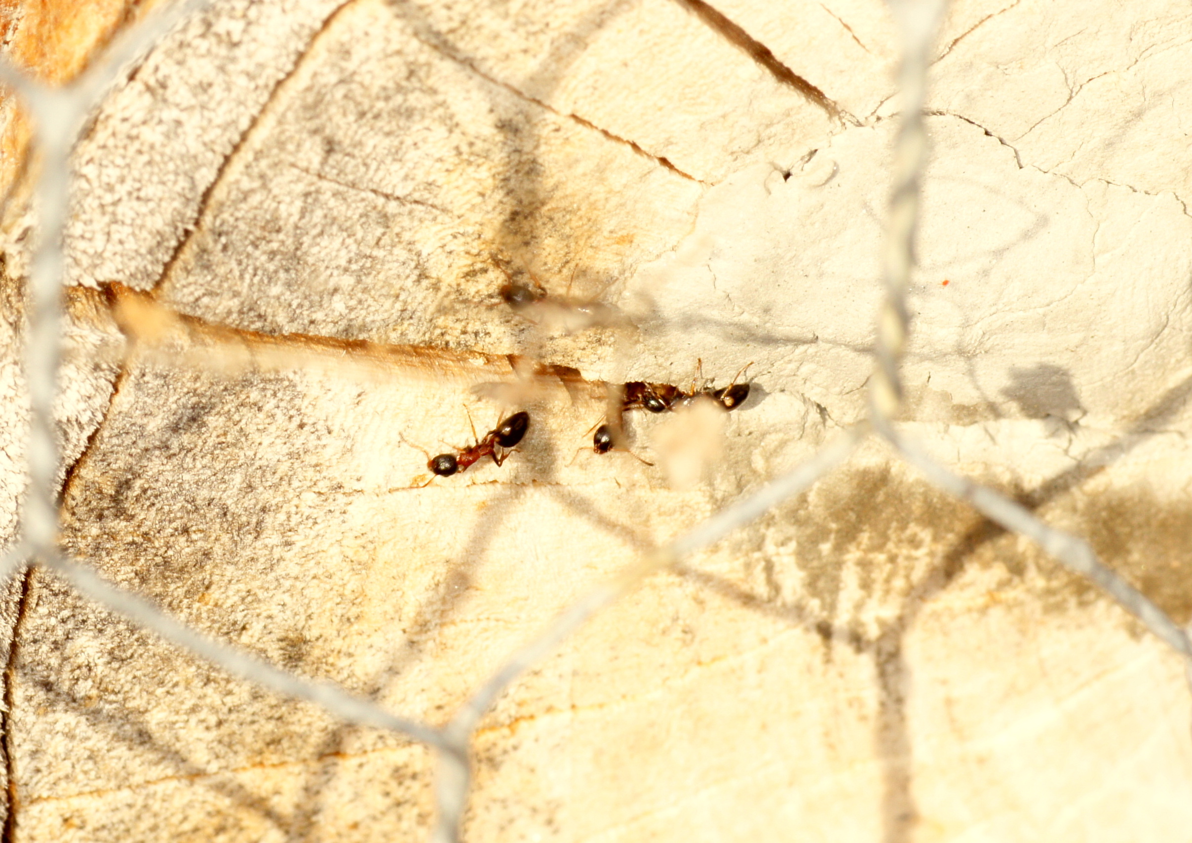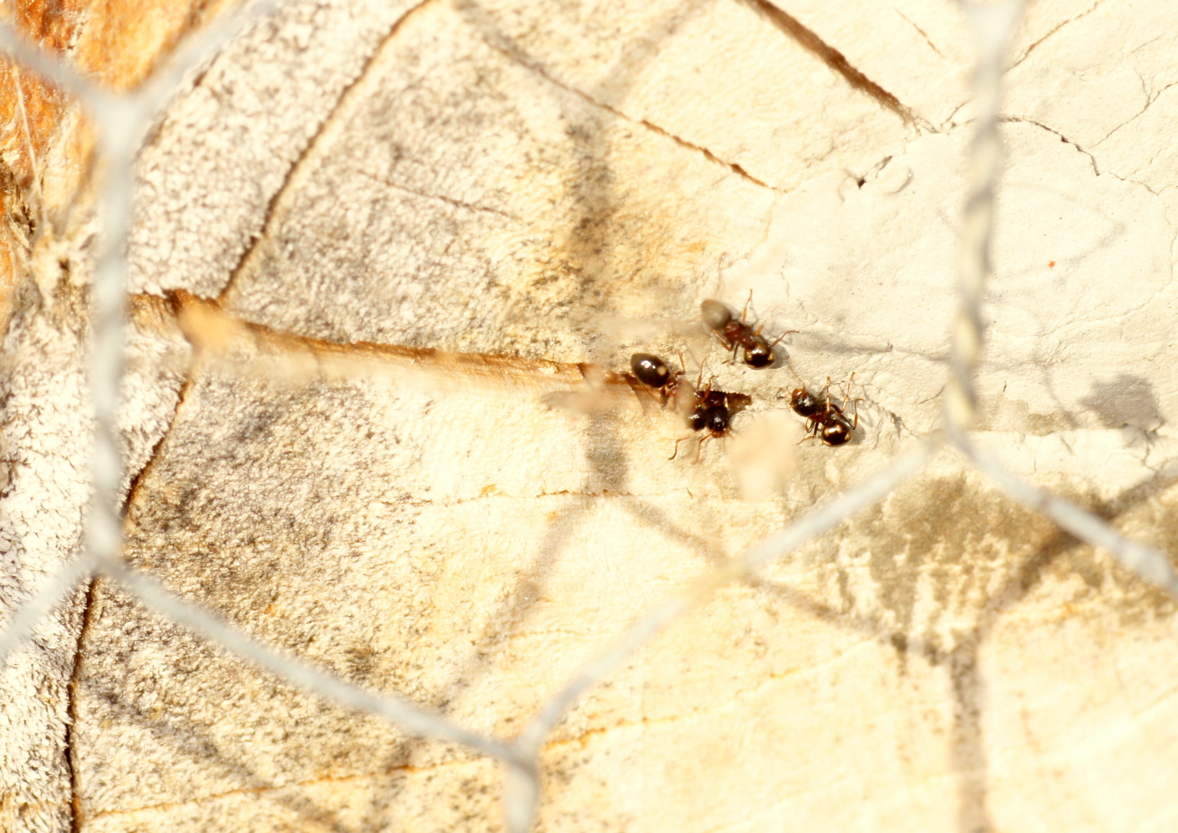 Nr. 1, ein vermutlich älteres Tier. Der Pfeil zeigt auf eine Dolichoderus; bei der Temperatur liefen doch ein paar herum.