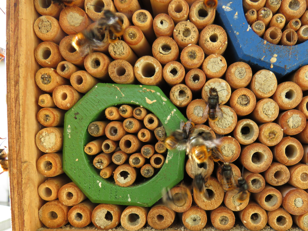Reges Treiben im Insektenhotel