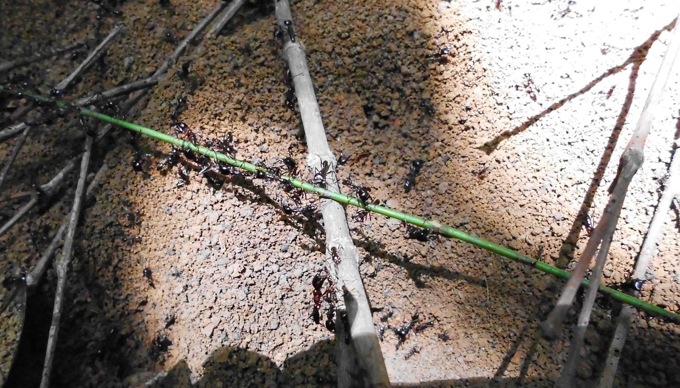 Ich hau hier mal ein schweres Rätsel rein, und bin mal gespannt - was ist hier abgebildet? Leider nur ein sehr schlechtes Bild, deswegen gebe ich mal einen Tip dazu; die Ameisen darauf sind Dorylus.