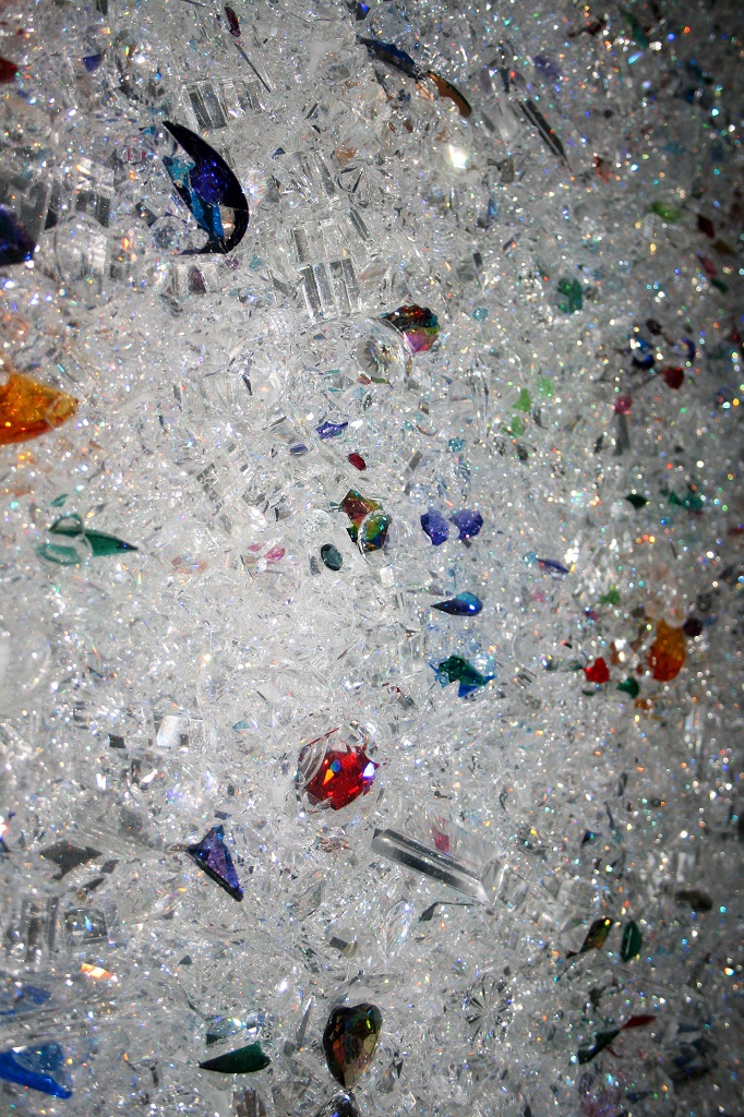Kristallwelten (Svarowski, Wattens), eine Galswand, die mit ca 12t geschliffenen Glas-Kristallen befüllt ist.