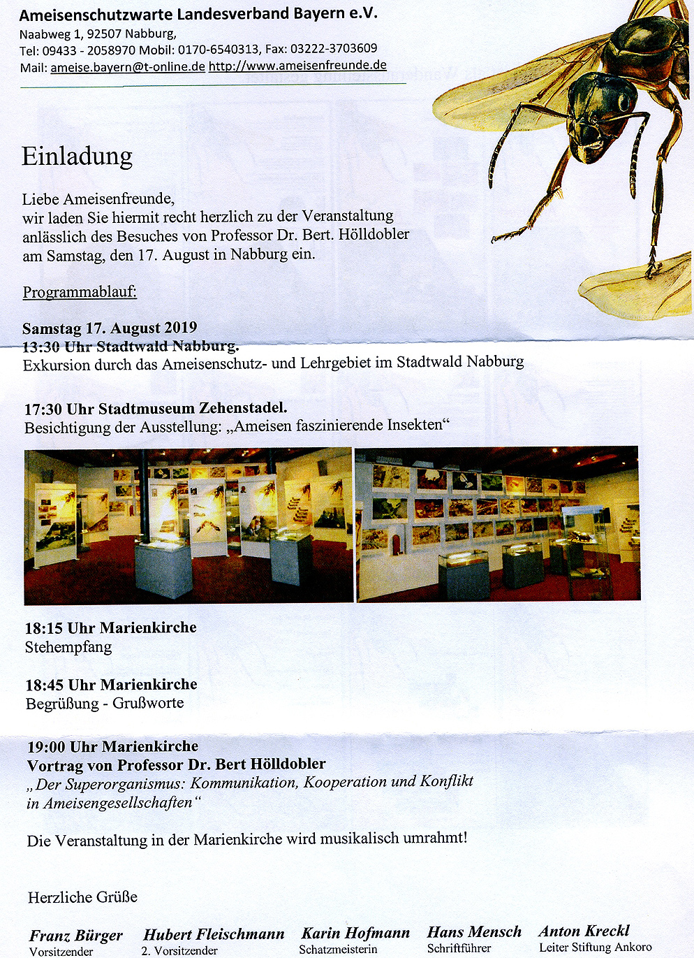 Von der Ameisenschutzwarte im DASW-Landesverband Bayern kommt die Einladung zu einer Veranstaltung in Nabburg, bei der Prof. Hölldobler einen Vortrag halten wird: