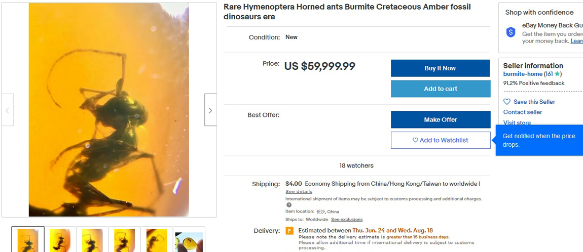 Es gibt von demselben Anbieter auch wesentlich günstigere Bernstein-Fossilien. Scheint ein boomendes Geschäft zu sein. :roll: