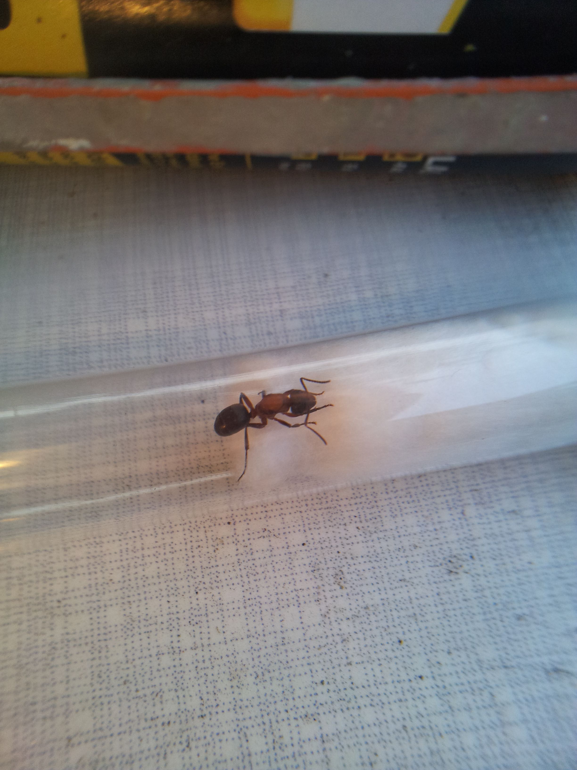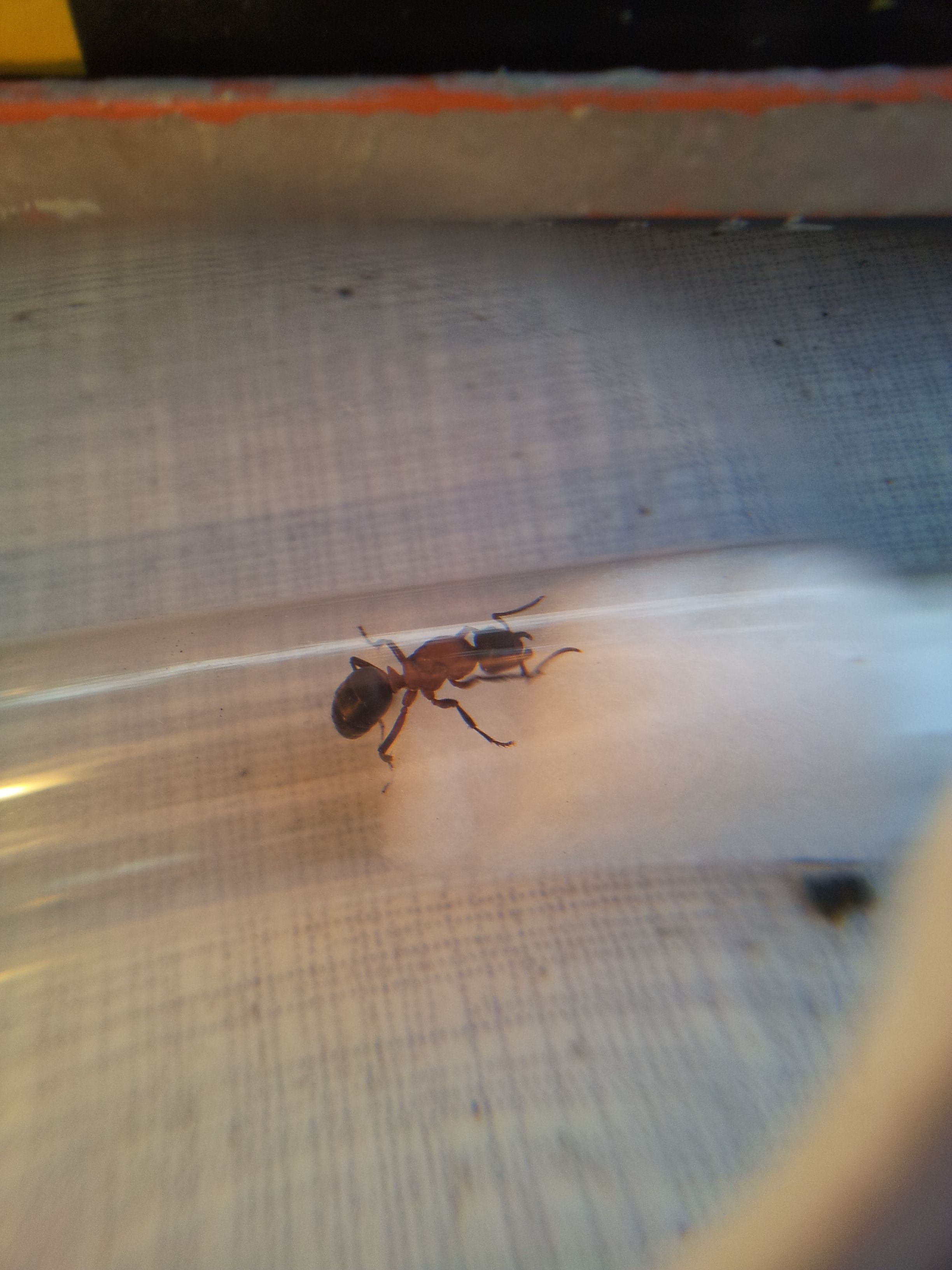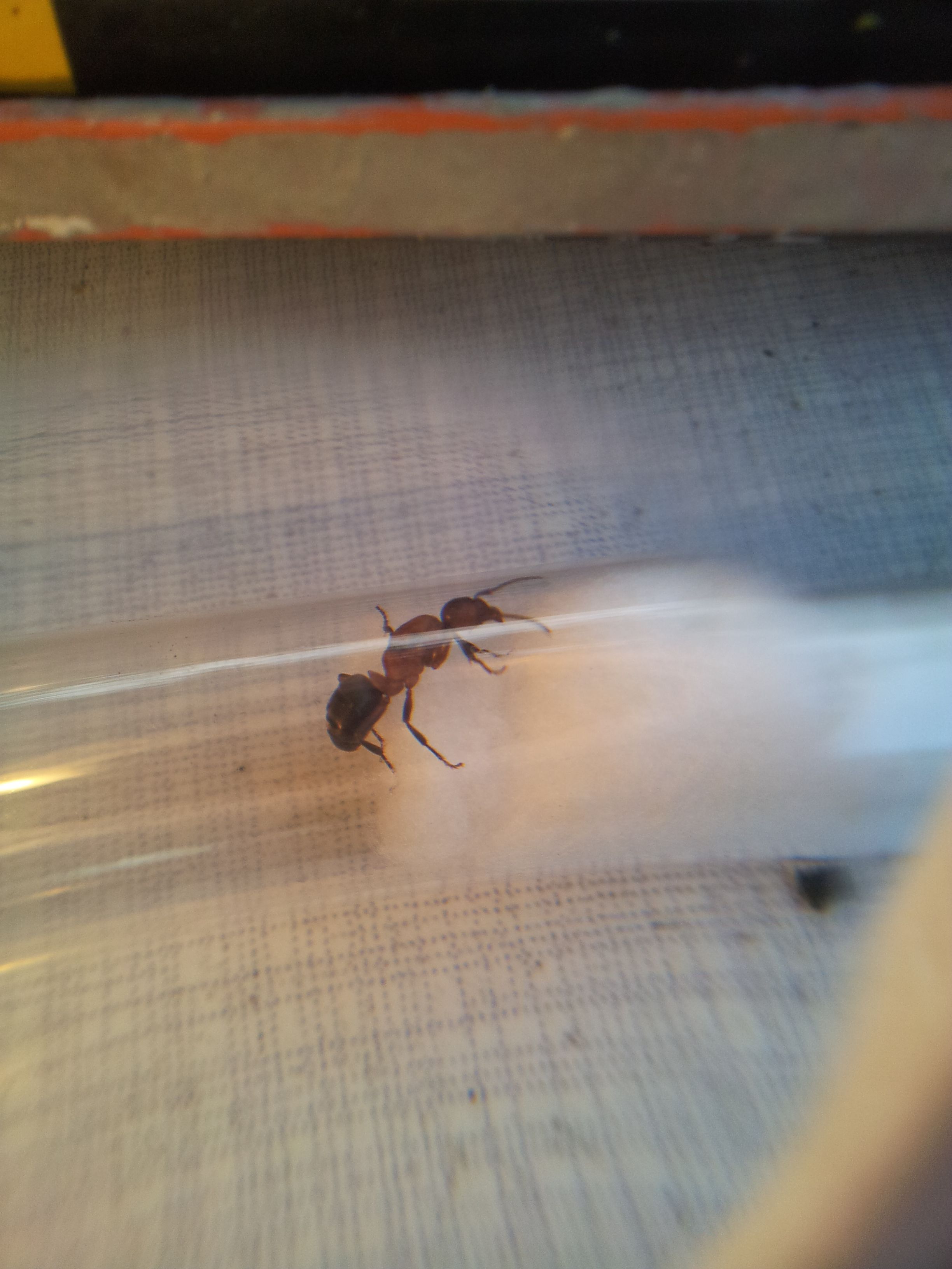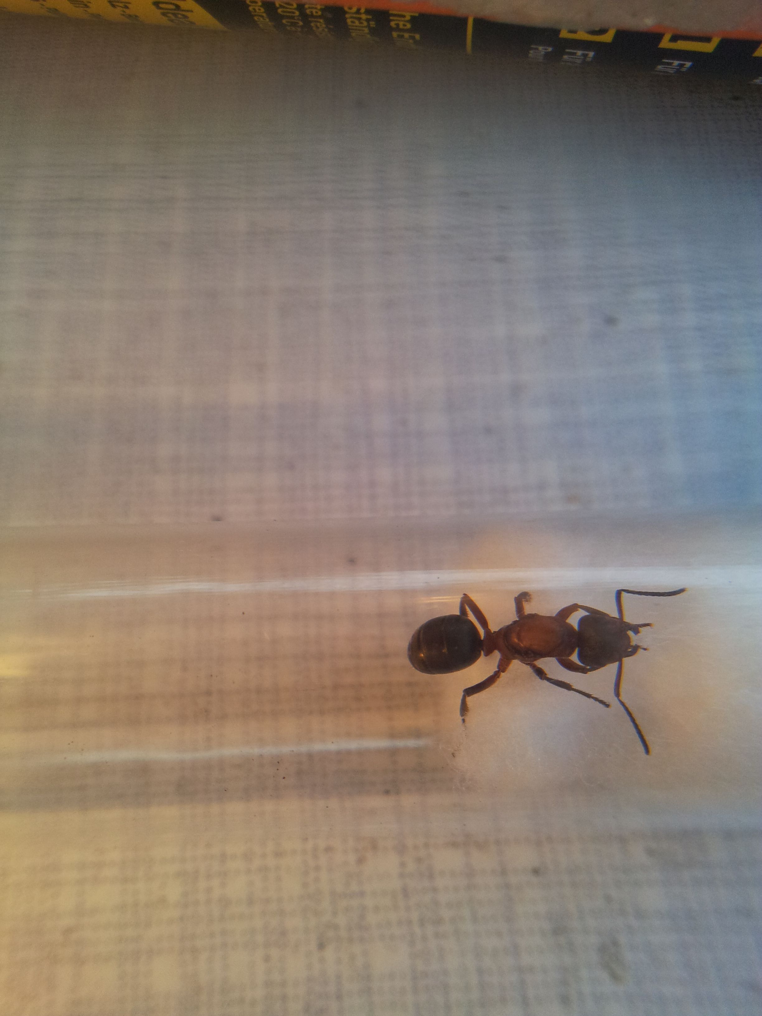 Seit einer Woche googelte ich nun Ameisen. Auf einmal erblickte ich in meinen linken Augenwinkel eine sich etwas ruckartig bewegende Kreatur. Sofort , fast in Zeitlupe , machte ich mich auf die Suche nach ein passendes Gefäß ohne das Insekt aus den Augen zu lassen.