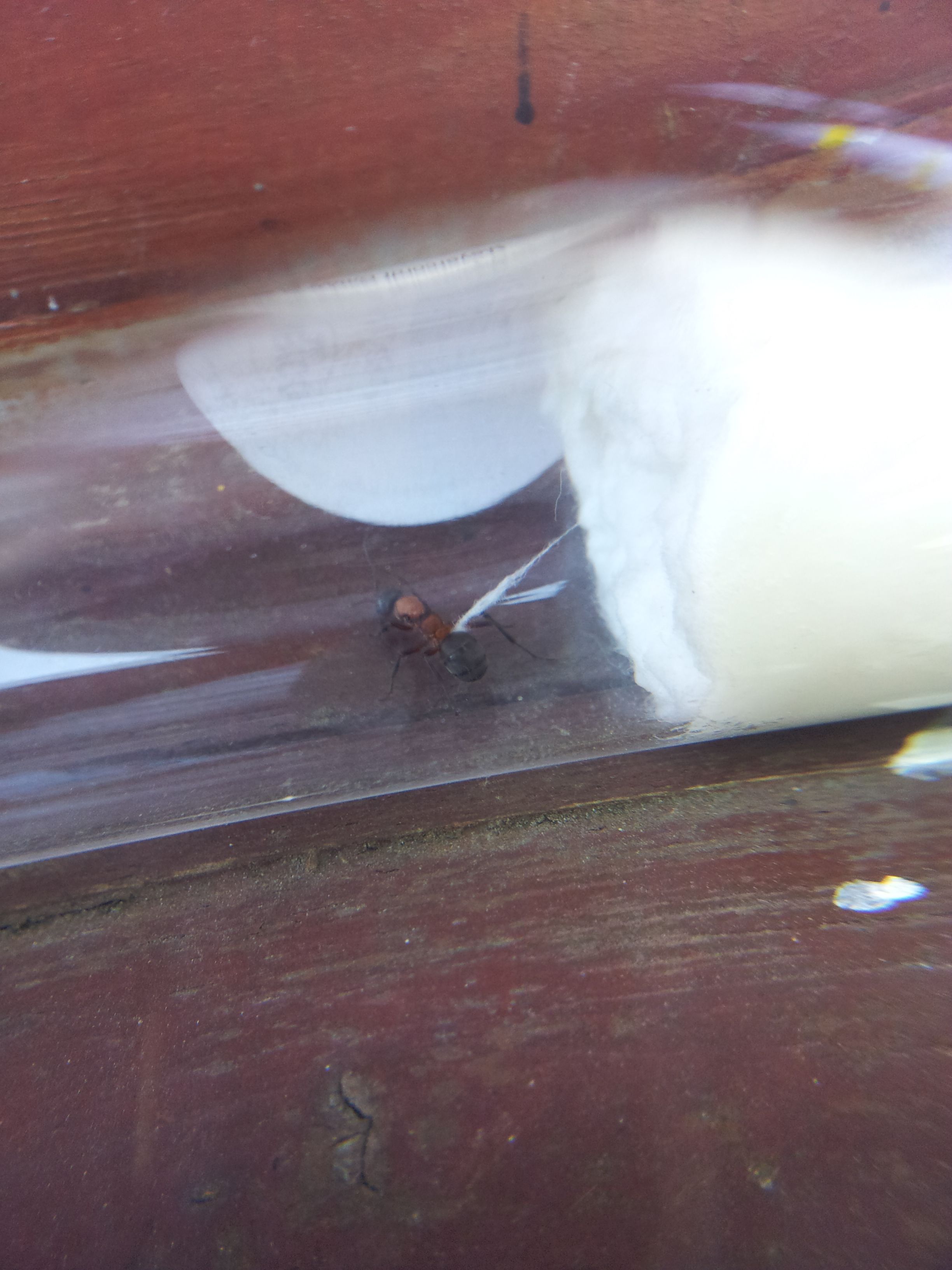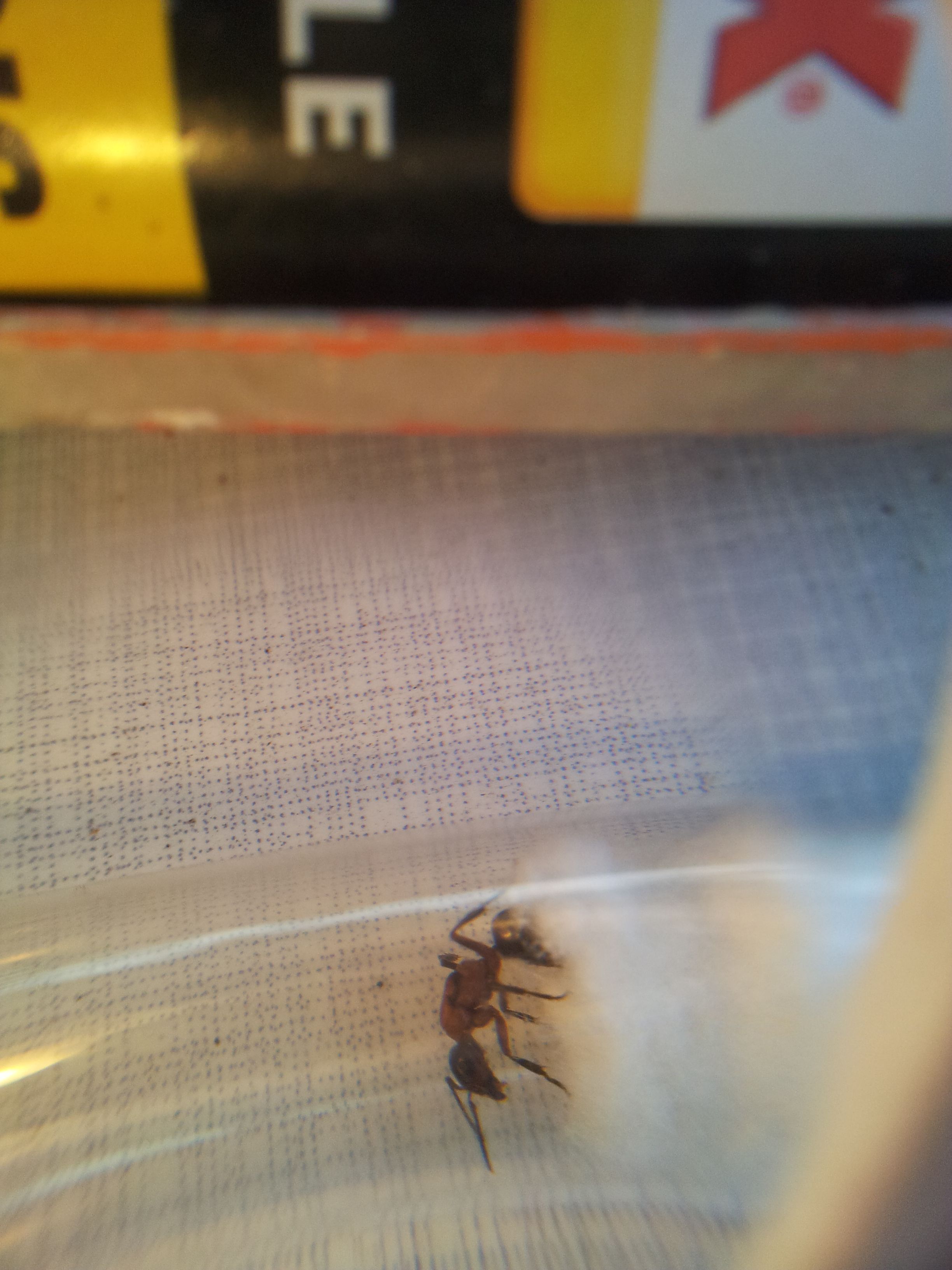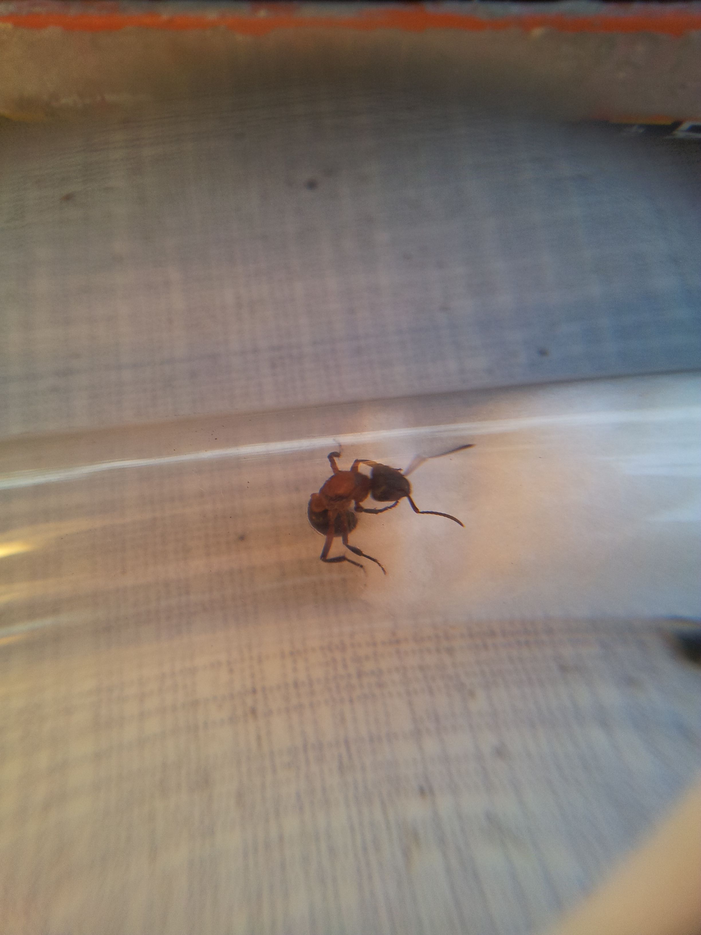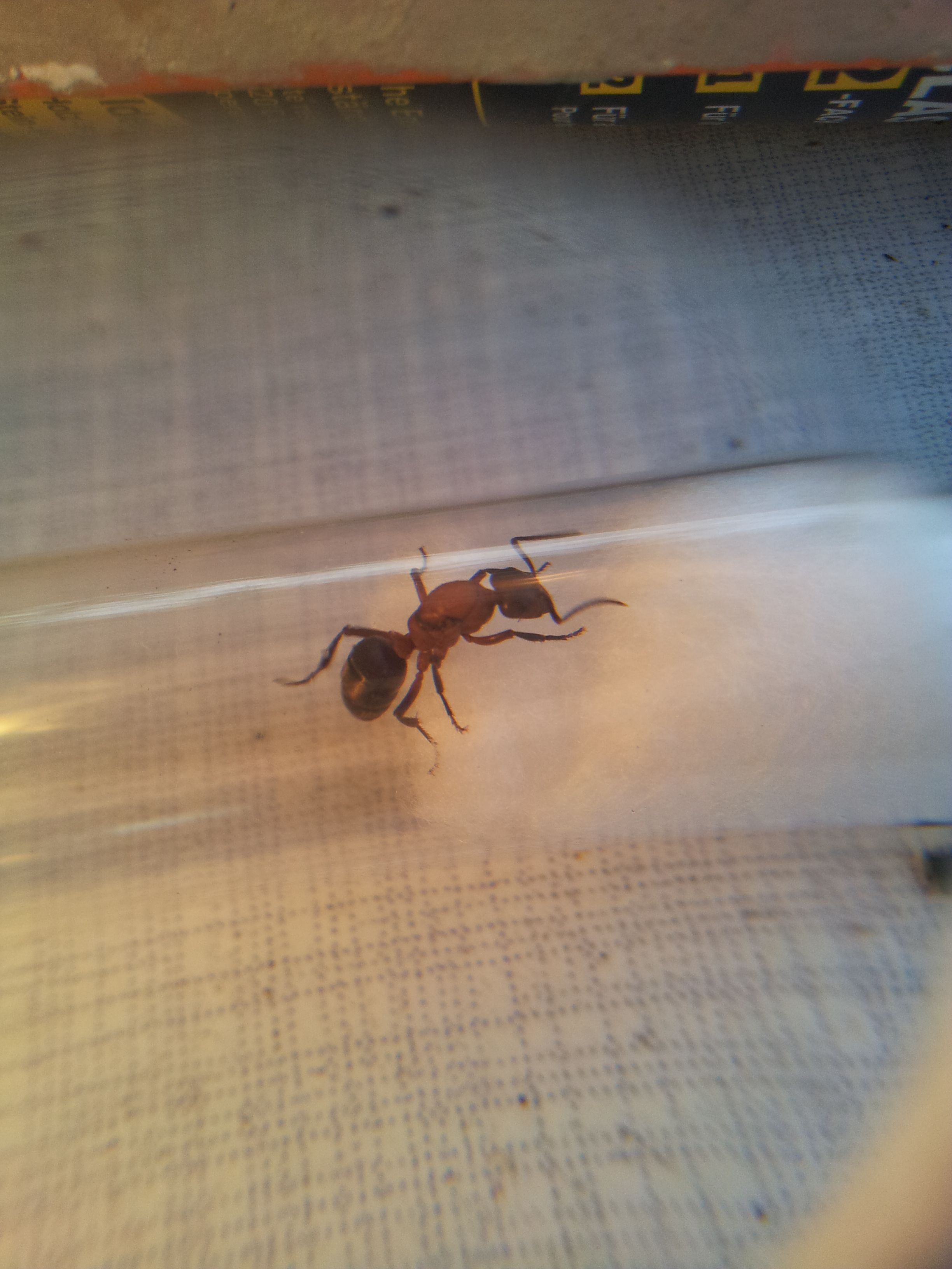 Seit einer Woche googelte ich nun Ameisen. Auf einmal erblickte ich in meinen linken Augenwinkel eine sich etwas ruckartig bewegende Kreatur. Sofort , fast in Zeitlupe , machte ich mich auf die Suche nach ein passendes Gefäß ohne das Insekt aus den Augen zu lassen.