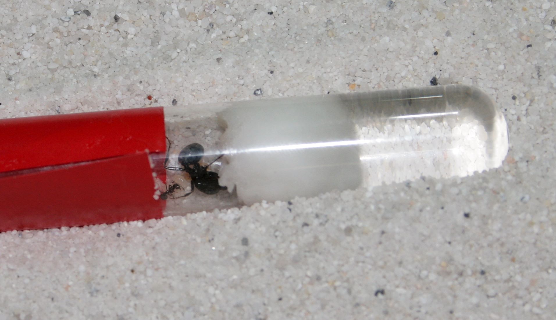 Viel ist ja derzeit nicht zu berichten, aber ich hab gestern eine ganze Zeit lang eine einzelne Arbeiterin dabei beobachtet, wie sie durchs Formi spaziert ist, den einen oder anderen Stein (Sandkorn) umgedreht hat. Offensichtlich hat sie dann wieder einen passenden gefunden, den hat sie dann zielstrebig zum Nest getragen. Dazwischen hat sie mal kurz eine Fliege versucht. Sie wollte wohl wissen ob die noch genießbar ist.
