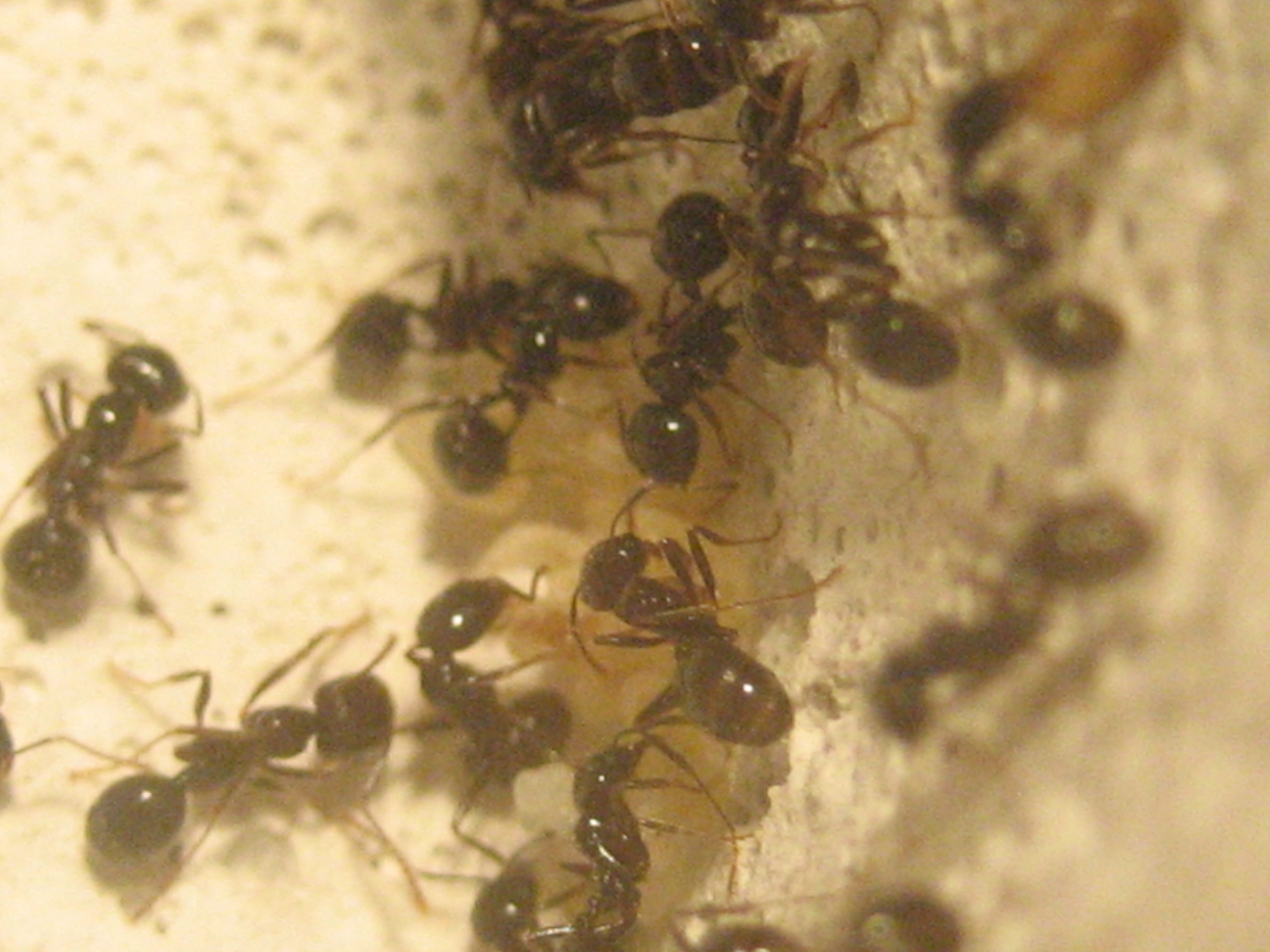 Nachdem ich jetzt mitsamt Ameisen umgezogen bin, bewohnen die kleinen inzwischen mein neues Büro. Die Temperaturen sind dort für Wohnräume relativ kühl und sie haben auch die Aktivitäten etwas eingeschränkt. Wenn sie gestört werden, reagieren sie jedoch sehr agil.