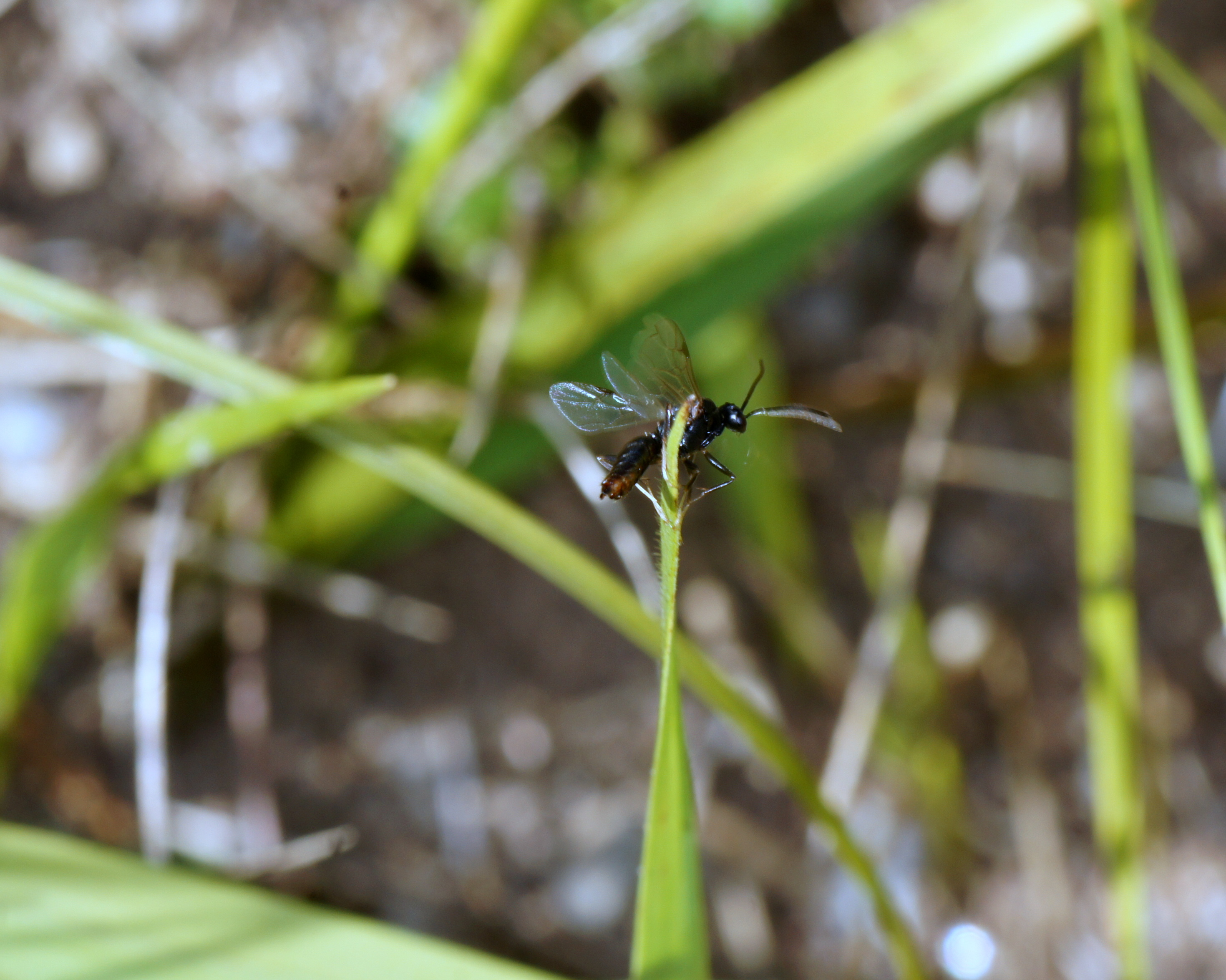 Bemerkung: Anlässlich der Beobachtung eines Polyergus X F. cunicularia-Nestes fiel mir um 16:30 ein einzelnes Männchen über dem Nest auf. Es versuchte ununterbrocken abzufliegen, offensichtlich war es flugunfähig: erst dann habe ich es als Beleg in Alkohol zur Bestimmung mitgenommen. Für das Schwärmen war es auch viel zu spät, dieses findet in der ersten Stunden nach dem Sonnenhöchststand statt. Tatsächlich, ein Männchen von Polyergus, ein brauchbares Foto ist mir nur vor Ort gelungen.