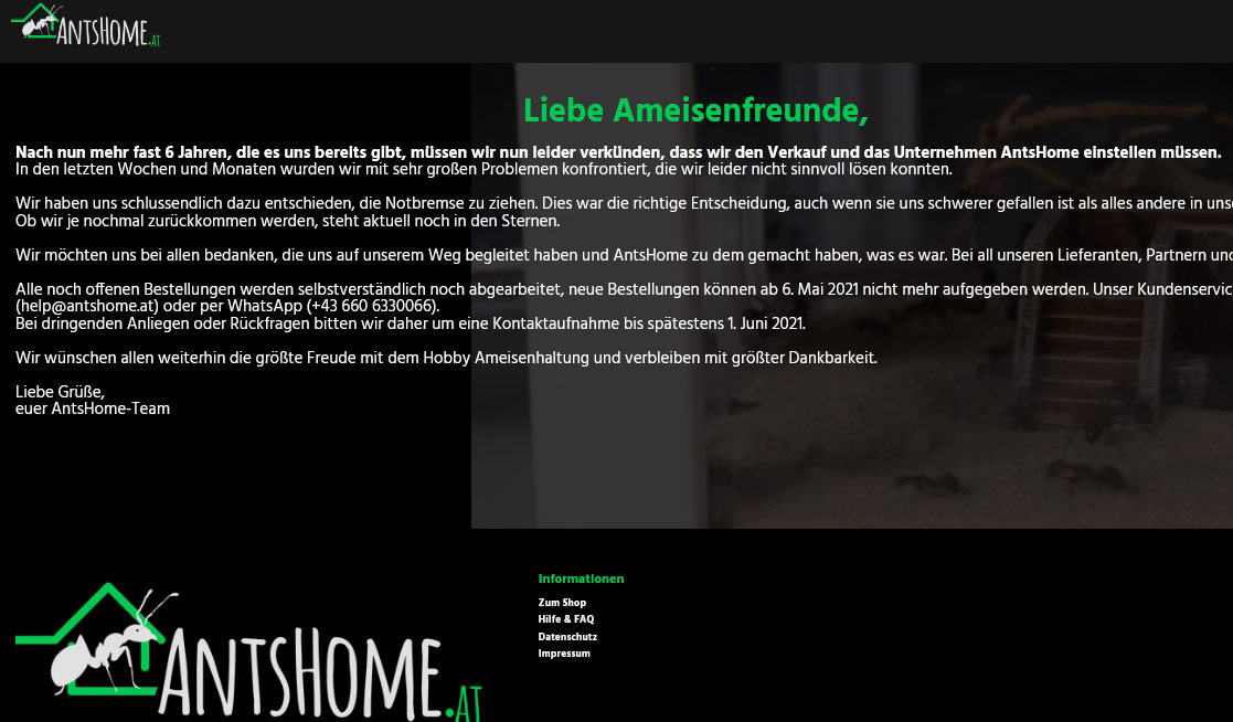 So hat Antshome in Österreich bereits im Sommer 2021 dicht gemacht: