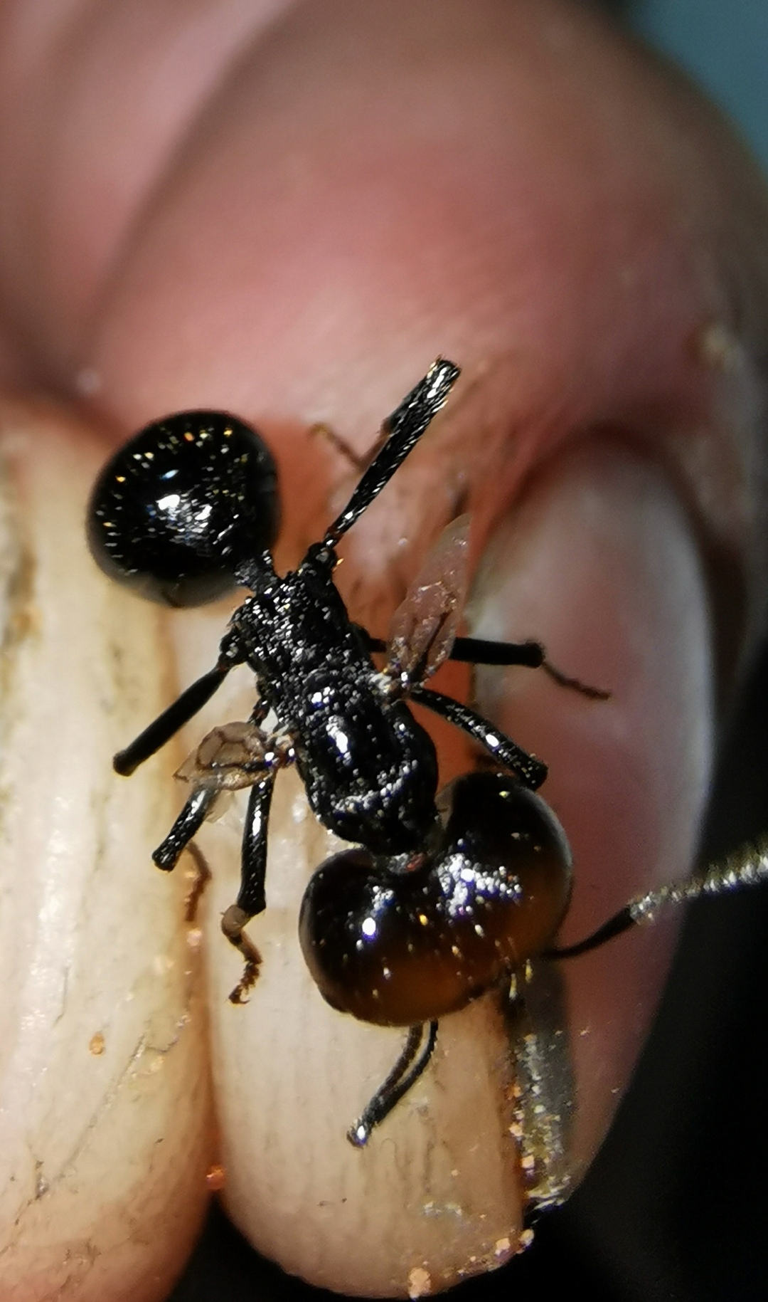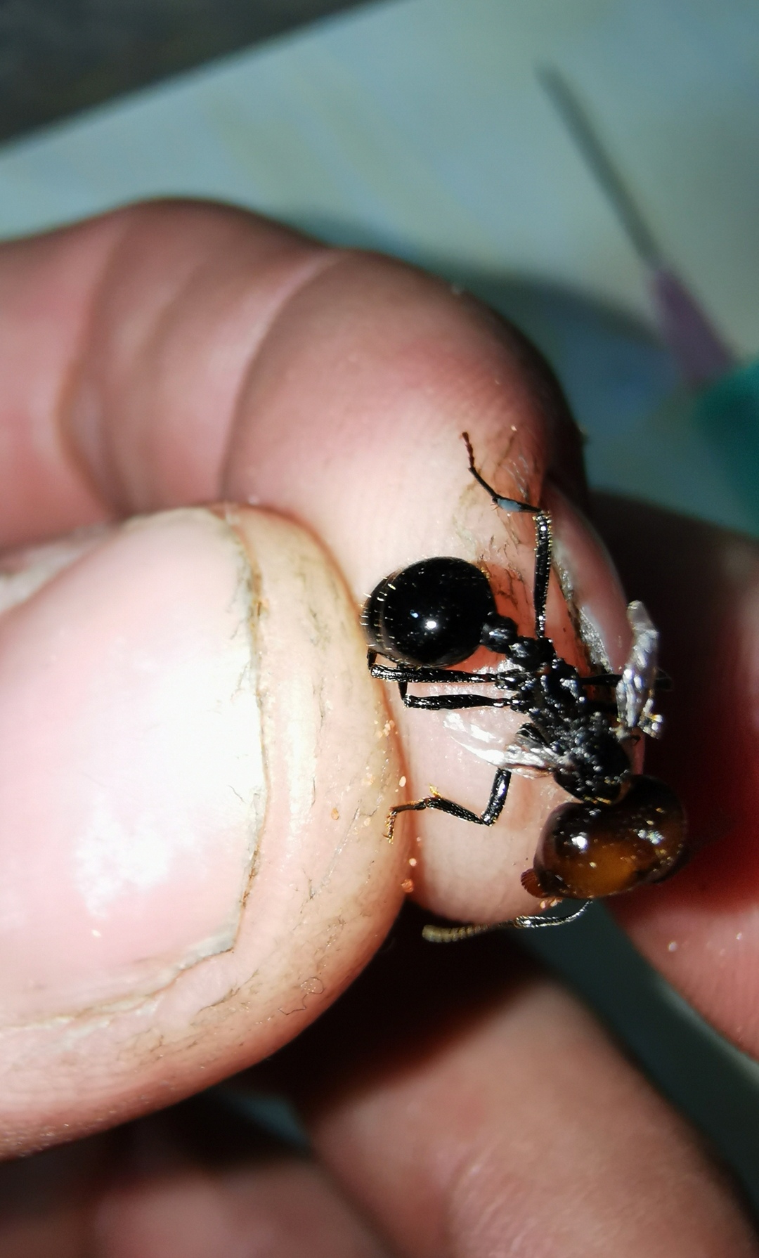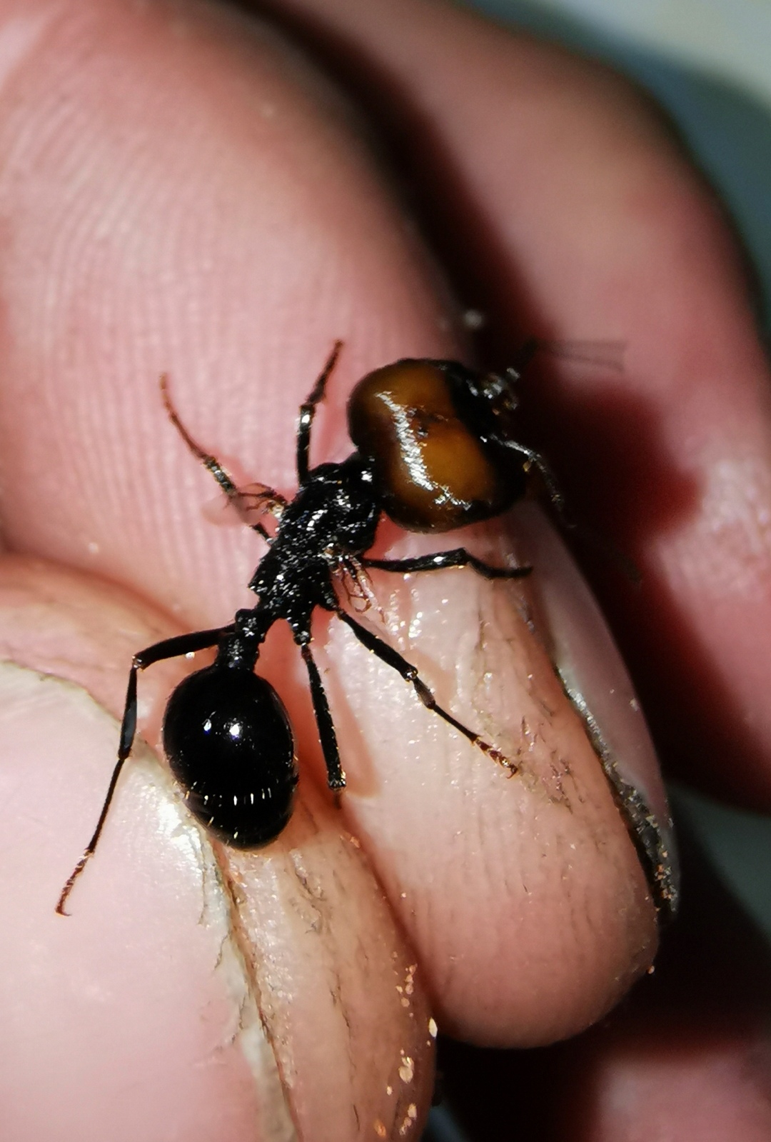 Meine Messor Kolonie aus Afrika (genaue Art leider unbekannt, Majore größer als bei barbarus), zieht nun das erste Mal Jungköniginnen auf. Mittlerweile sind nun 10 geschlüpft und noch einige Puppen vorhanden. Vorhin beim Kontrollblick ins Nest ist mir eine Major ins Auge gestochen. Bei genauerer Betrachtung fiel mir auf, dass diese kleine verkümmert Flügel besitzt. Ansonsten weist sie keinerlei Merkmale einer Gyne auf.