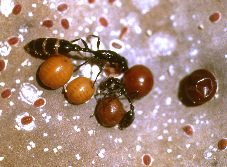 Klein, R.W., Kovac, D., Buschinger, A., Schellerich, A., Maschwitz, U. (1994): Mealybug-transport by swarming queens, water bailing from flooded nest chambers, and other adaptive strategies of a Southeast Asian bamboo ant (Hymenoptera: Formicidae: Pseudomyrmecinae: Tetraponera). Les Insectes Sociaux, Paris - Sorbonne 1994, Abstract volume p. 200, A. Lenoir, G. Arnold, M. Lepage /Eds.)