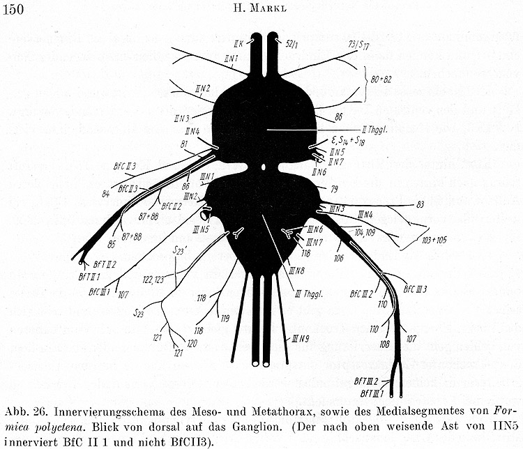 Aus Anlass des Ablebens von Hubert Markl viewtopic.php?f=23&t=819 habe ich nach ein paar seiner frühen Arbeiten zur Anatomie von Ameisen und anderen Insekten gesucht. Insbesondere eine Arbeit hatte mich zu meiner Doktorandenzeit besonders beeindruckt: