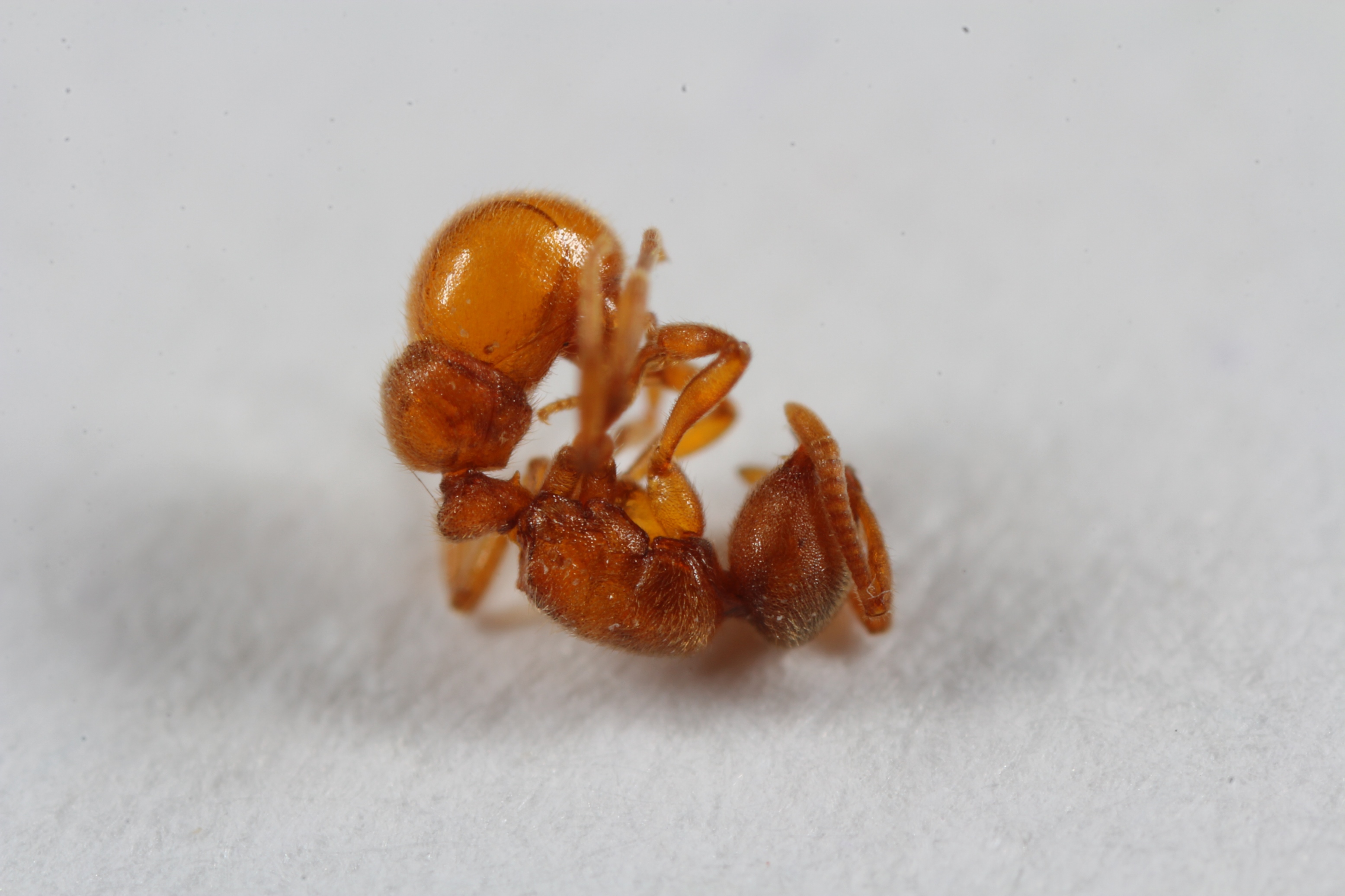 Proceratium melinum hat neben der eigenartigen Gastermorphologie (für mich) noch andere anatomische Auffälligkeiten: Vor allem die Gyne (weniger die Arbeiterinnen) besitzt am caudalen Propodeum 2 etwas auswärts gerichtete Höcker, die den Dornen mancher Gynen der Knotenameisen ähnlich sind; ebenso zeigt sich die "Schuppe" eigentlich als Knoten mit dem ventralen Zahn, der dem Petiolus etlicher Temnothorax spp. ähnlich ist.