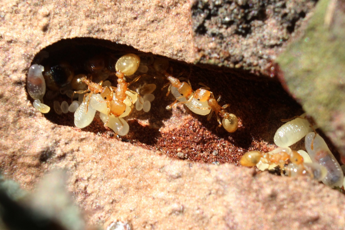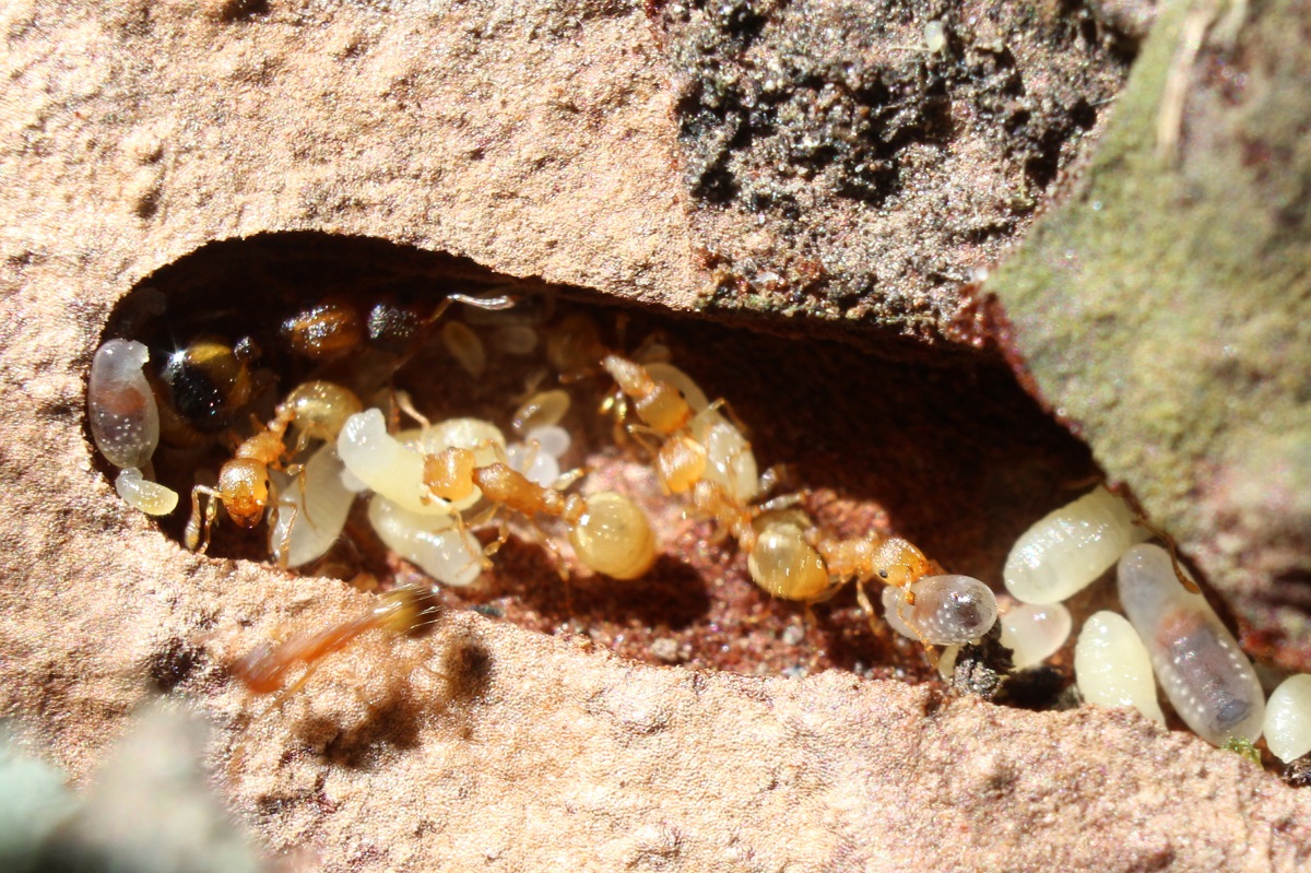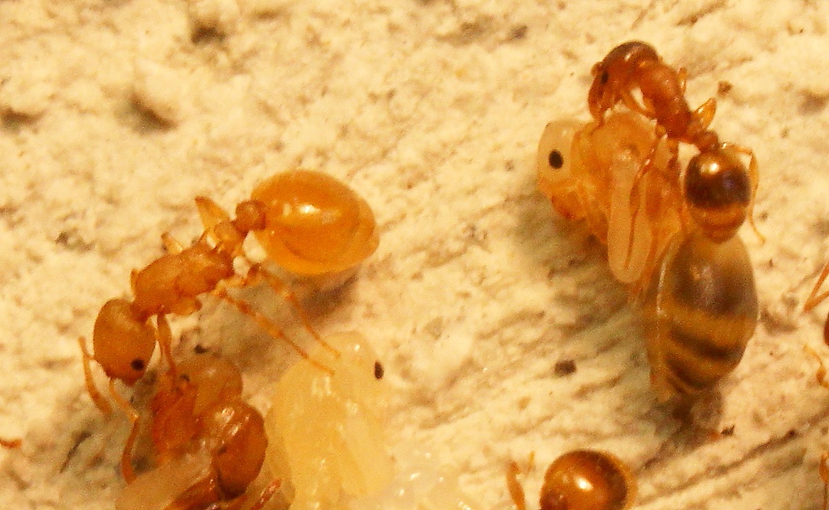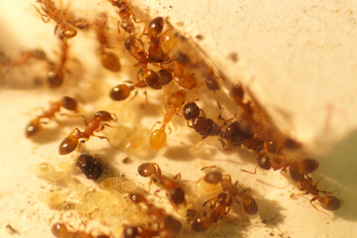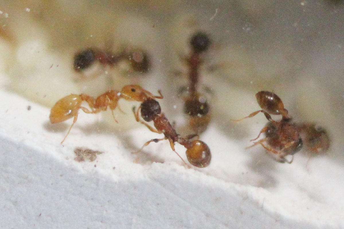 Drei der vier gelben Zwischenwirte (Temnothorax affinis)