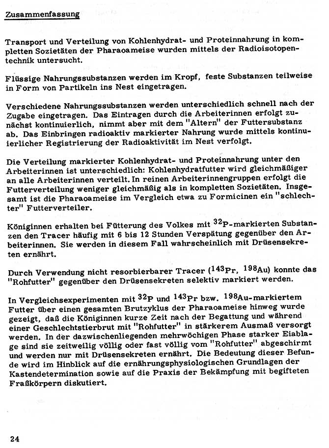 Aber interessant für die Myrmekologie ist der Inhalt, wobei das Inhaltsverzeichnis und vor allem die Zusammenfassung eigentlich das Wesentliche wiedergeben.