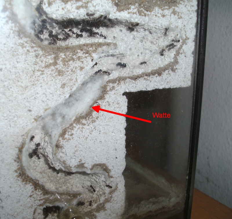 Bislang haben sich meine Kontrollen immer nur auf den Porenbeton erstreckt, beim eigentlichen Nest war ich erheblich nachlässiger, vorallem da ich höchstens eins, zwei Mal im Monat nach dem Wasser schauen muss. Das wird sich in Zukunft ändern, jetzt wird auch wirklich jeder Wattestopfen mitkontrolliert .