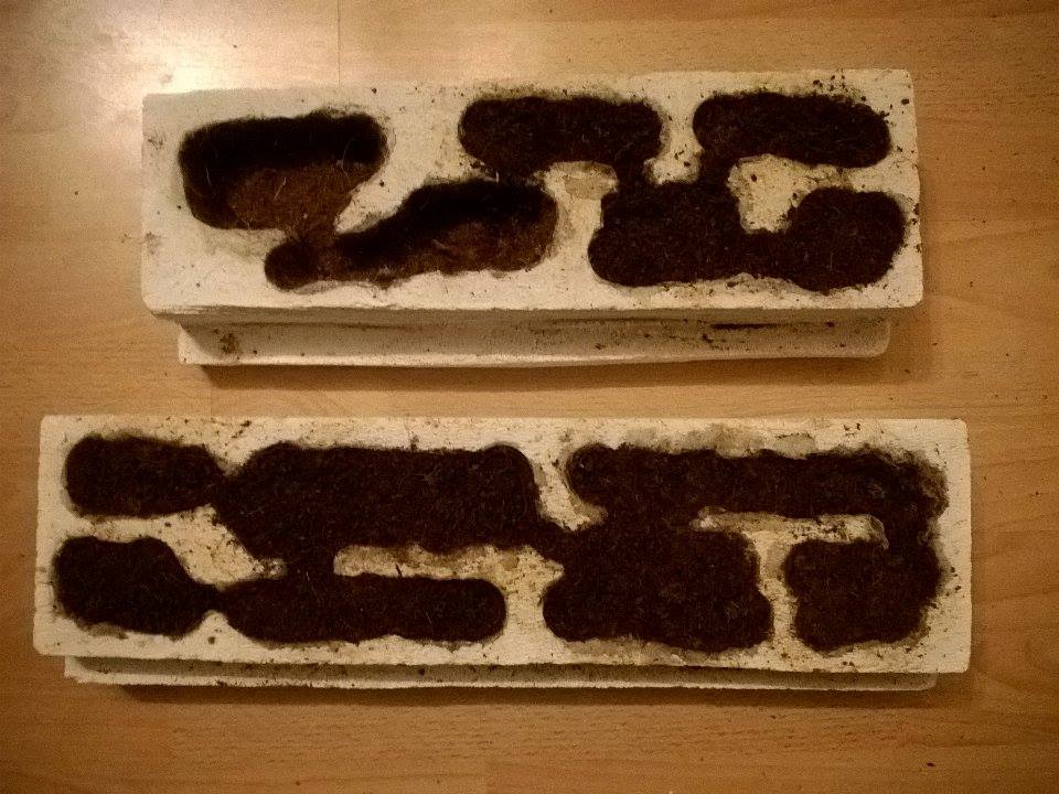 So sieht mein gefertigtes Nest jetzt aus. Bis jetzt sind nur 2 Kammern leer die ich ihnen als Start geben wollte. Den Rest sollen und können sie selber graben. (...)