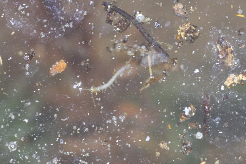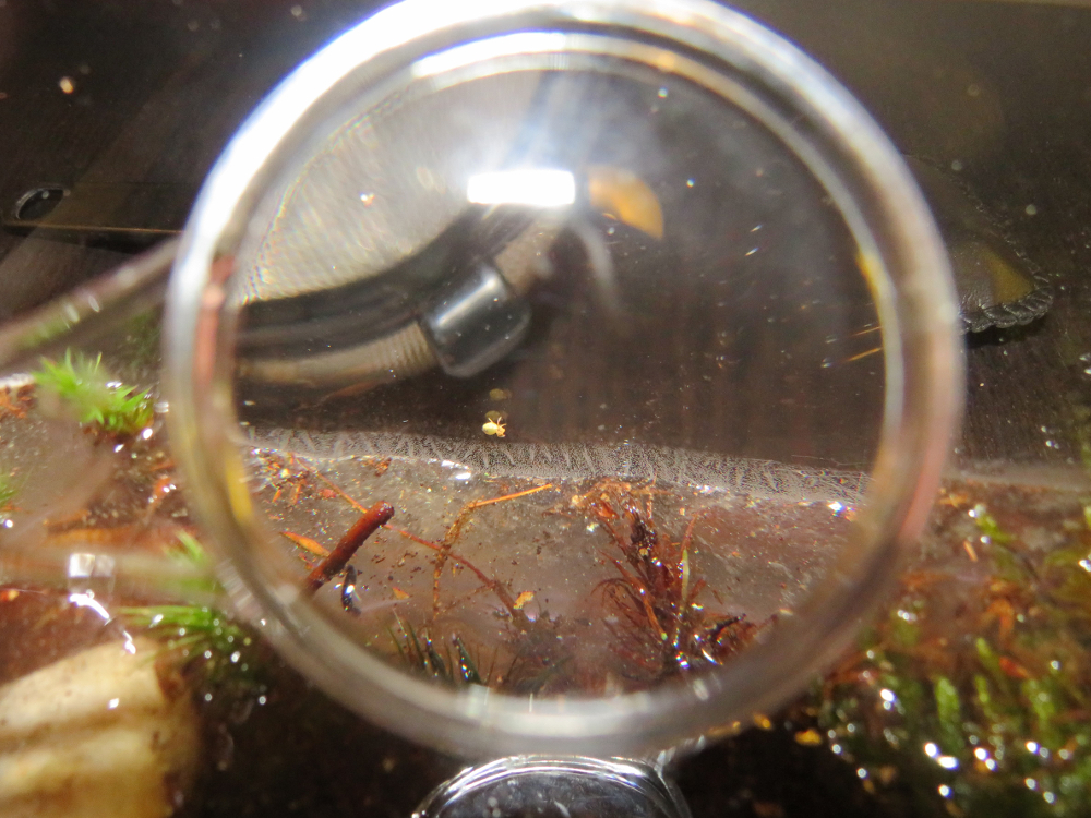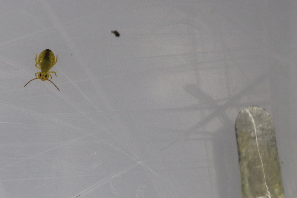 4. Nun kann man die Dose öffnen und die Springschwänze von der Wasseroberfläche einzeln abfischen und in eine trockene Dose schütteln. Meist sind es mehrere Arten, die man findet, es ist darum wichtig, möglichst viele Exemplare der selben Art heraus zu lesen. Wer es nicht so genau haben will, kann auch alle Tiere vom Deckel in eine sterile Dose schütteln. Und die verbleibenden Insekten auf der Wasseroberfläche mit einem Teesieb abfischen und ebenfalls in die Dose klopfen. Hier besteht natürlich das Risiko von unerwünschtem Beifang. Deshalb kann man mit einer guten Lupe noch einmal kontrollieren, ob es nur noch Springschwänze hat, bevor die Tiere in die gewünschte Anlage kommen.