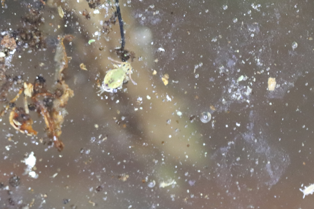 Spätestens mit der Lupe erkennt man oft, dass sich im Boden auch Milben, (Faden-)Würmchen, Trauermückenlarven oder ähnliches befinden. Die meisten Milben dürften zwar harmlose Moos- oder Bodenmilben (Oribatida) sein. Um aber möglichst nichts Ungewolltes einzuschleppen, kommt hier der nächste Schritt: