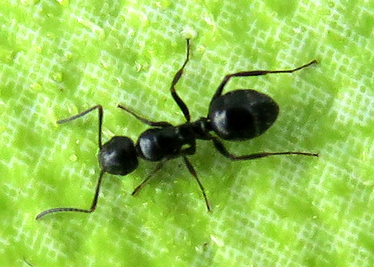 Es ist Camponotus piceus, von der immer mal wieder einzelne Exemplare auf dem Tisch nach Verwertbarem suchten.