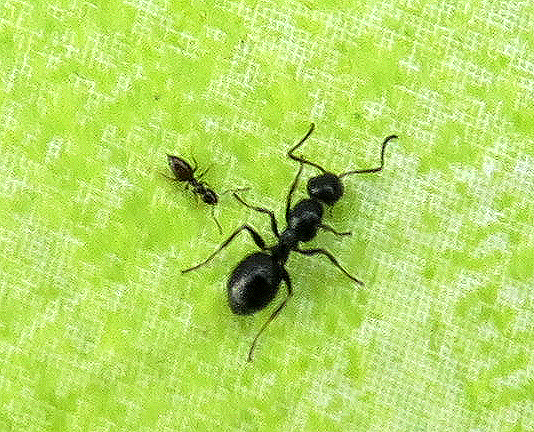 Praktisch von morgens bis abends suchten auch Plagiolepis sp. dort herum. Der Größenunterschied ist beachtlich!