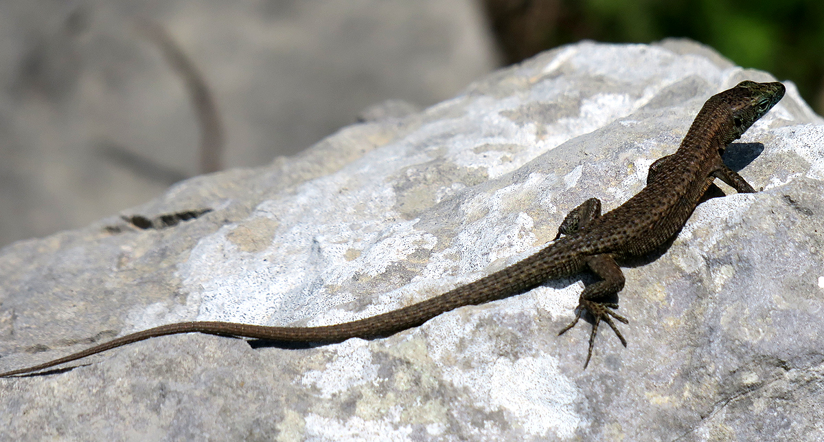 Am häufigsten findet man Ruineneidechsen, Podarcis cf. siculus. Bei den vielen Arten der Gattung und deren Unterarten sowie
