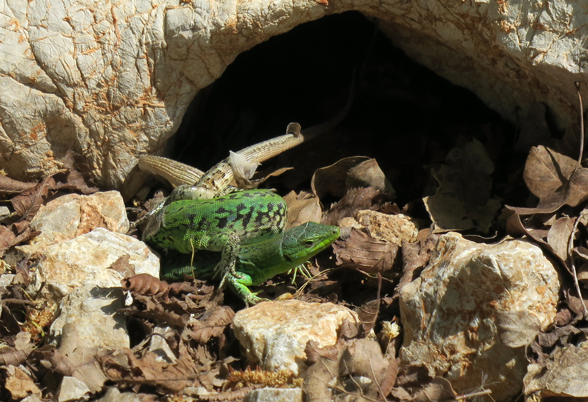 Das letzte Exemplar dürfte ein Jungtier der Westlichen Smaragdeidechse, Lacerta bilineata, sein. (? Steffen Kraus)