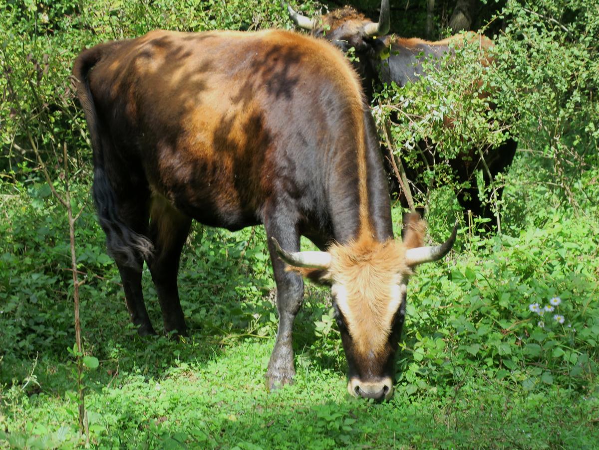 Mit dem Aalstrich und den elegant geschwungenen Hörnern sehen sie der Stammform unserer Hausrinder ähnlich, dem Ur oder Auerochsen.