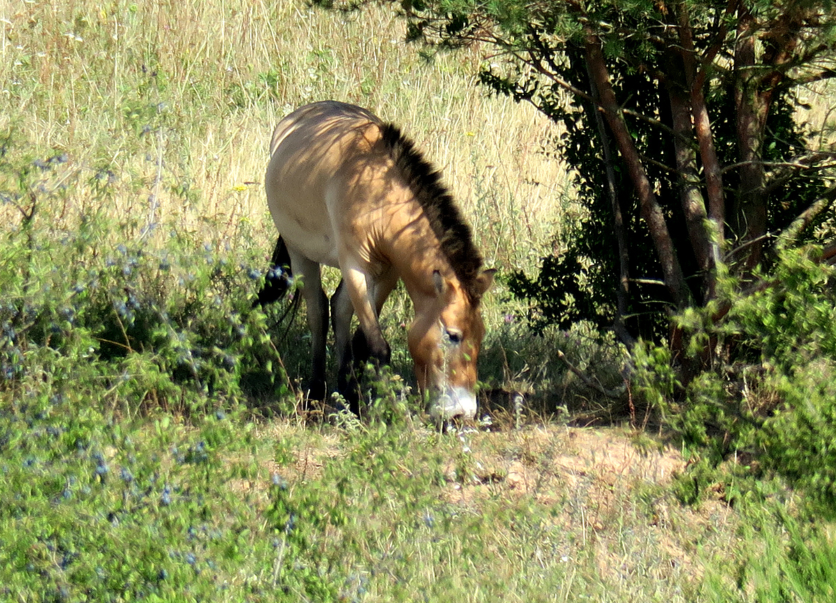 wo man Przewalski-Pferde und sog. Heckrinder angesiedelt hat. Sie „pflegen“ die weiten, offenen Flächen und sorgen u. a. dafür, dass sich dort eine recht reichhaltige Fauna eingestellt bzw. erhalten hat.